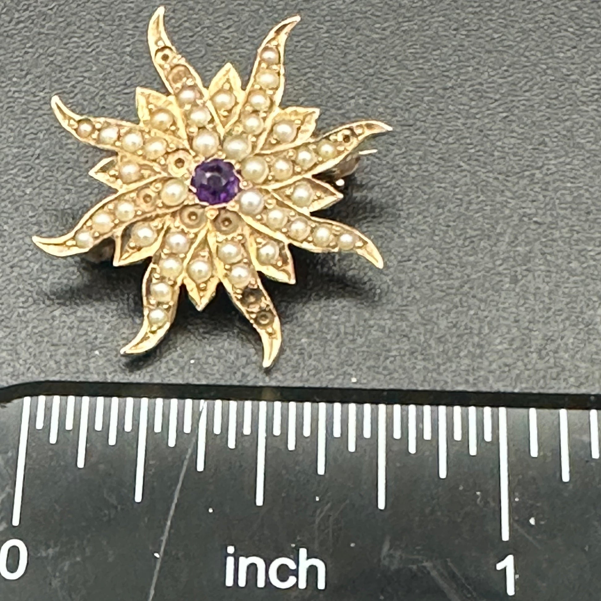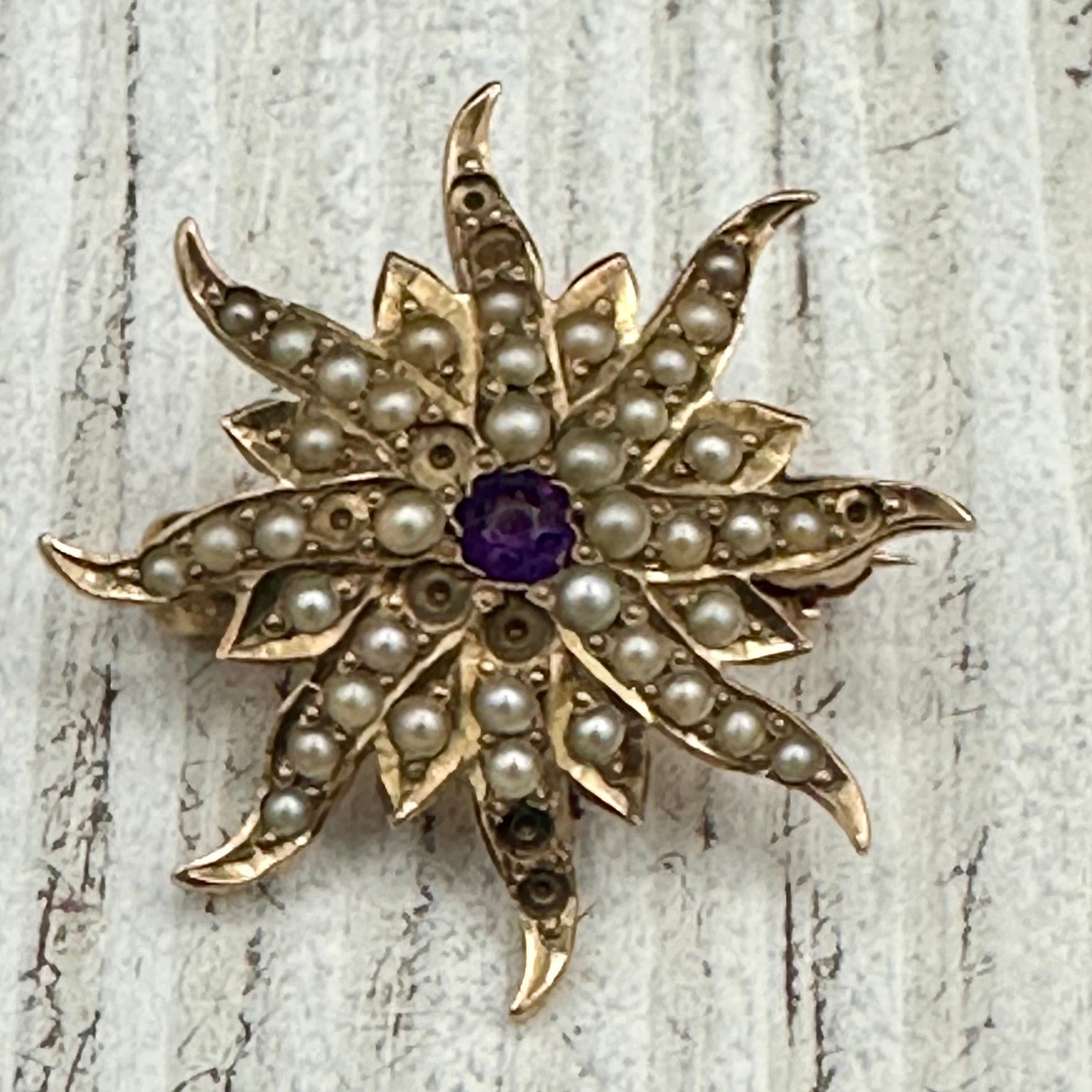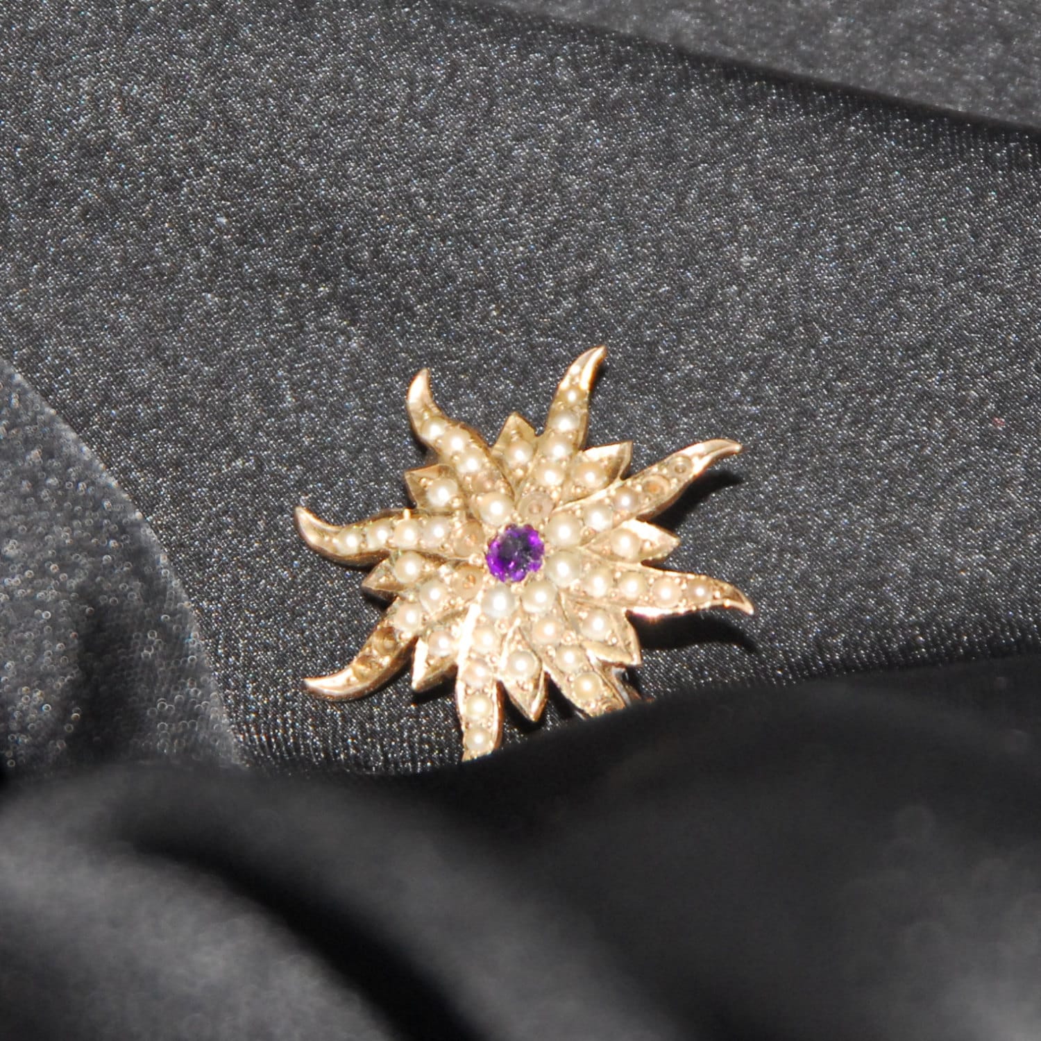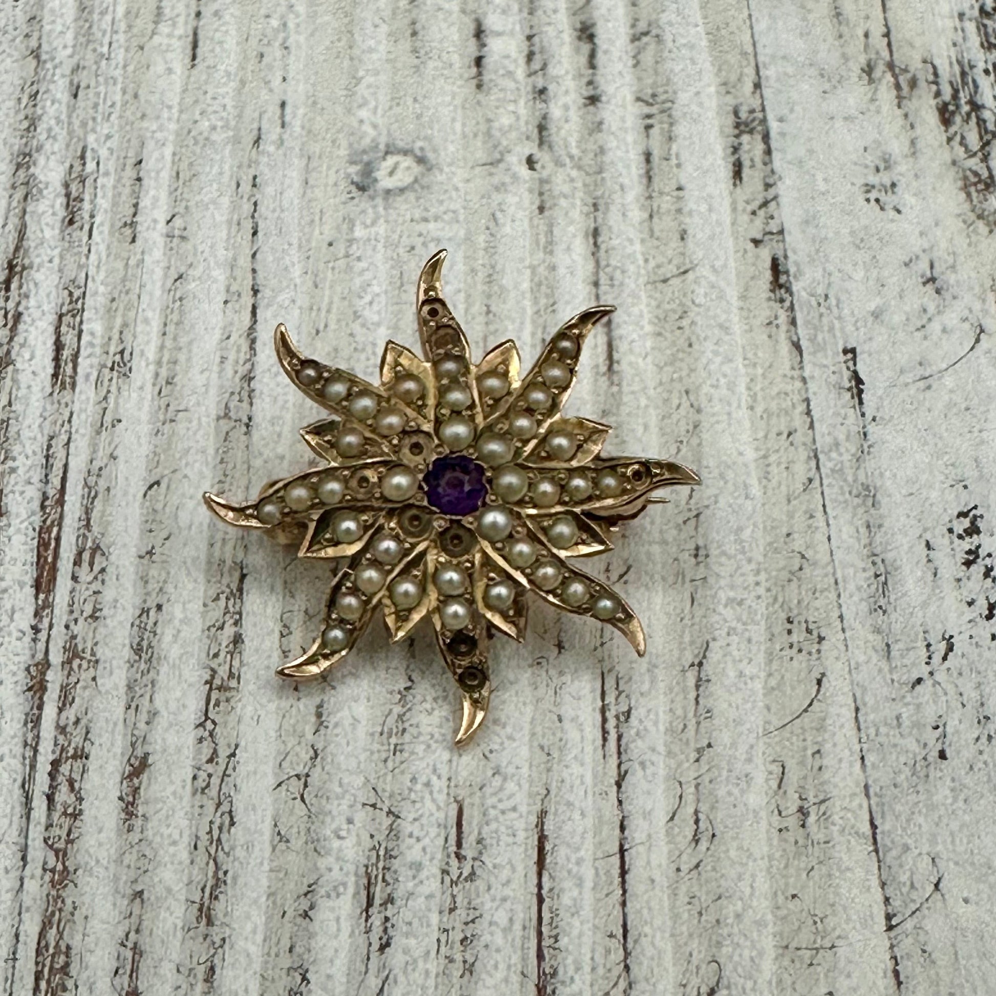 Antique Seed Pearl and Amethyst Starburst Brooch