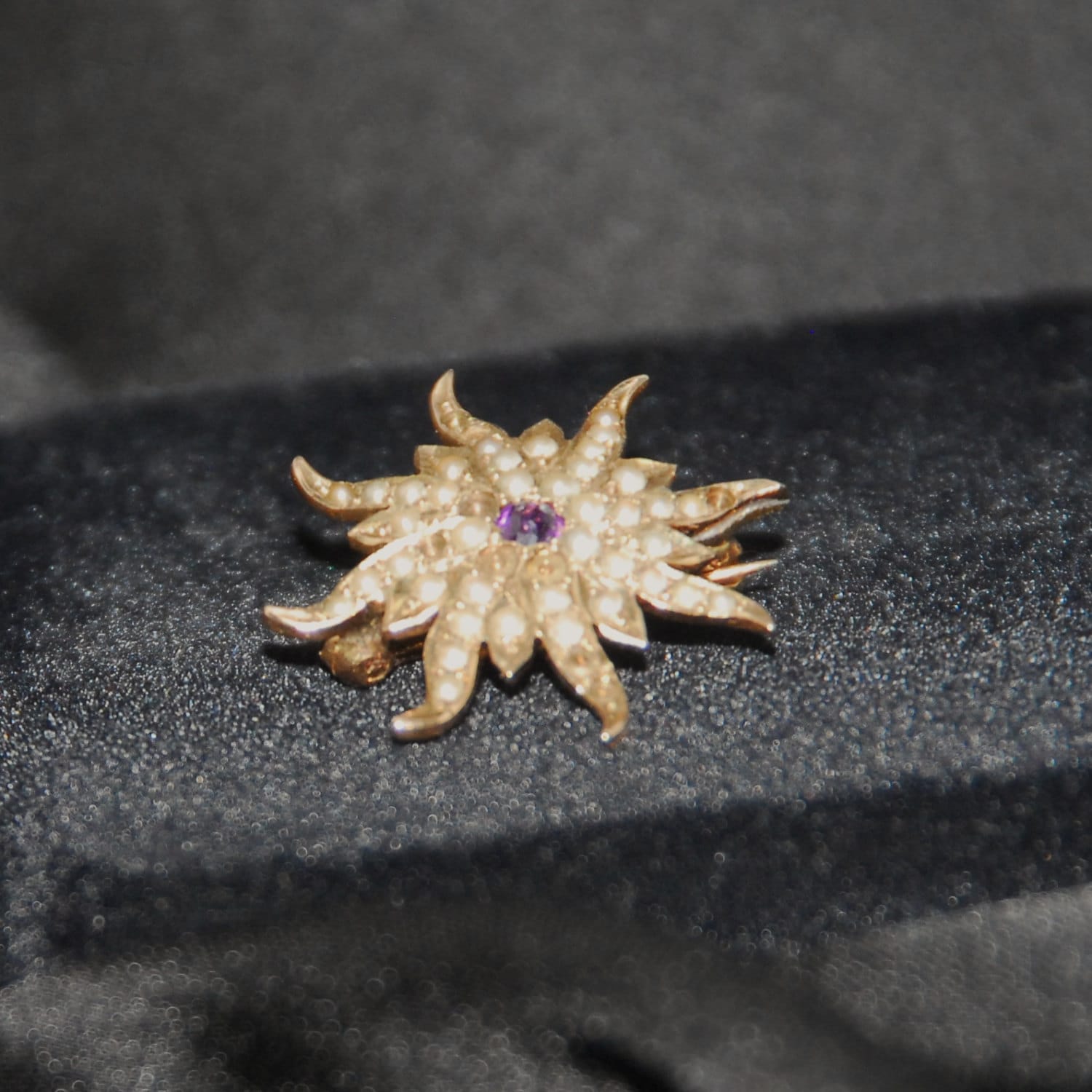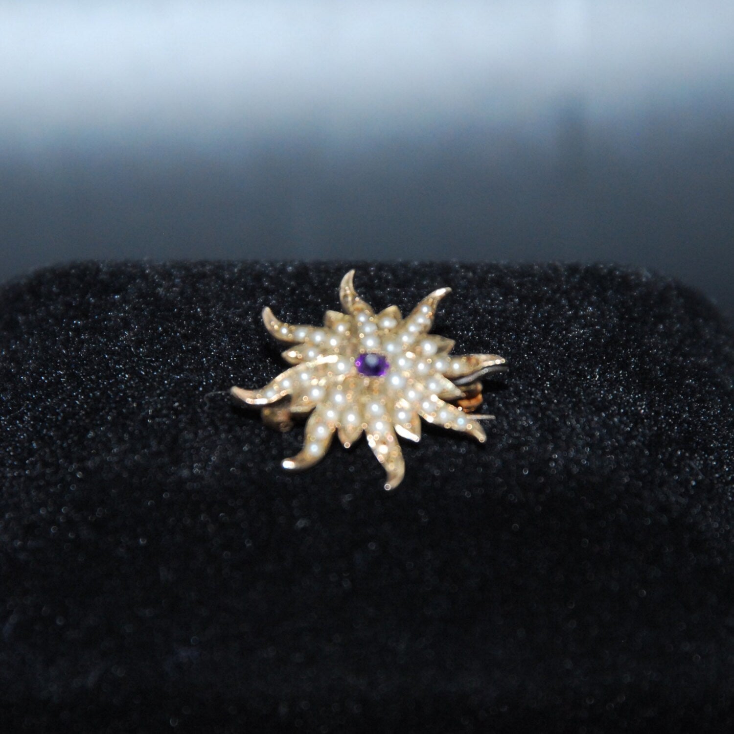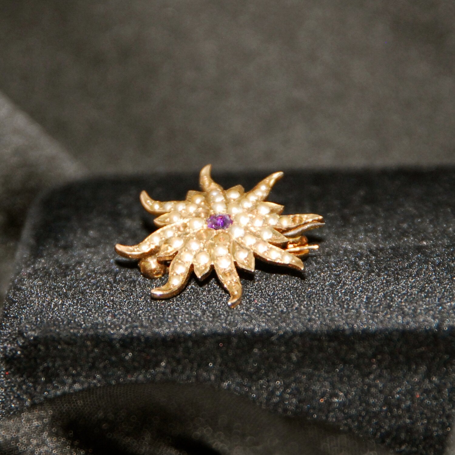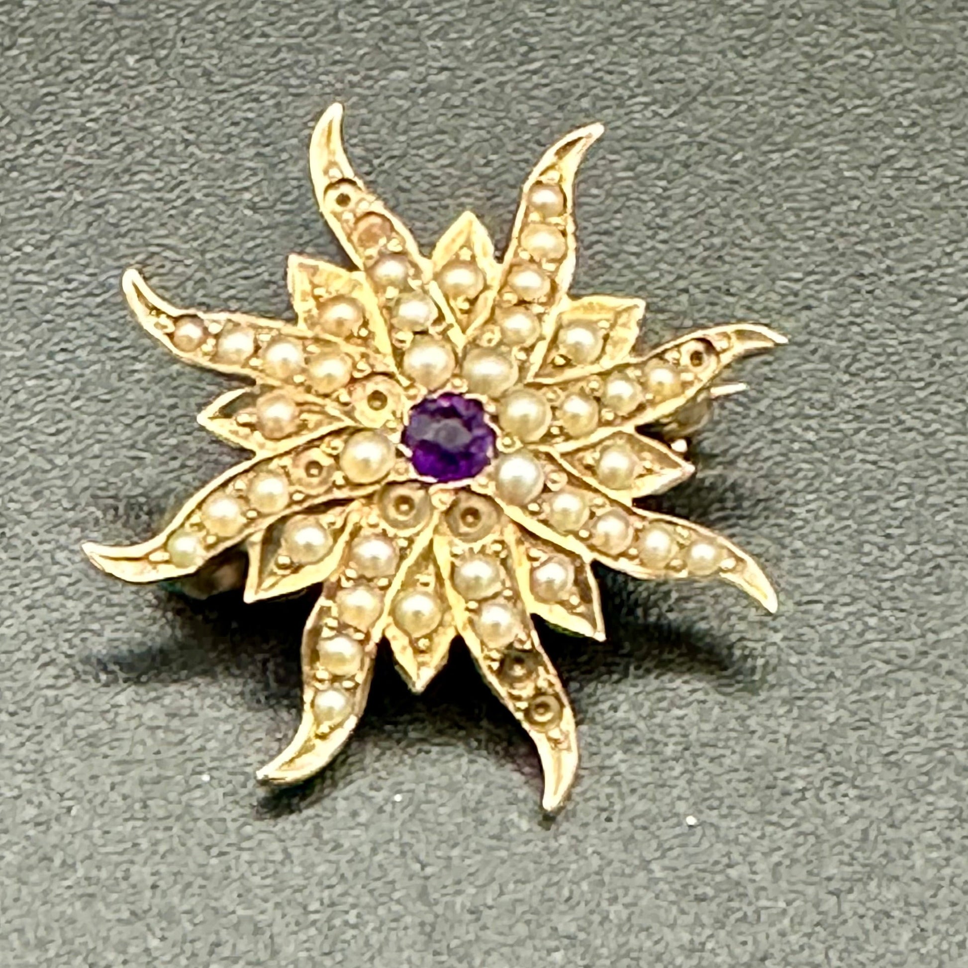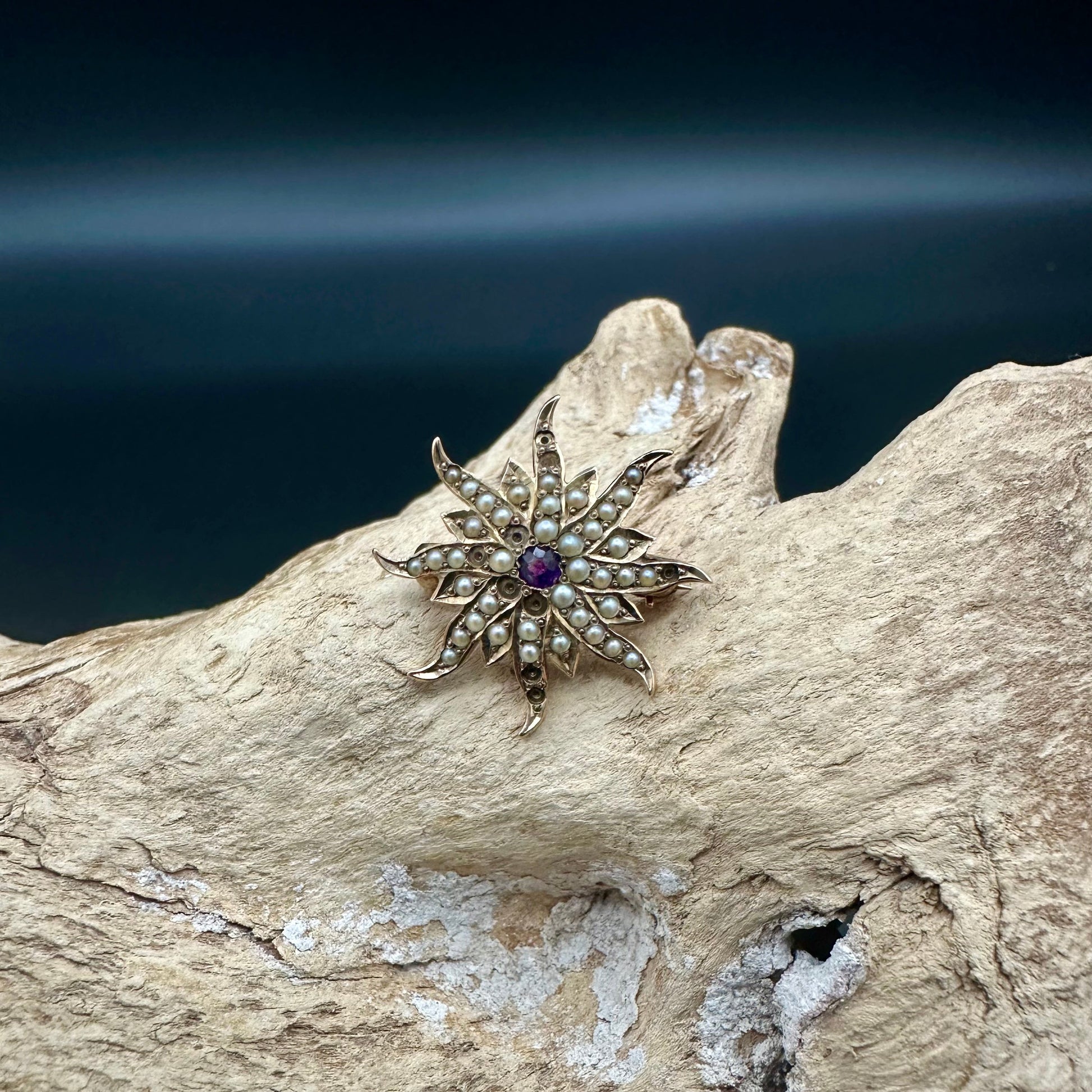 Antique Seed Pearl and Amethyst Starburst Brooch