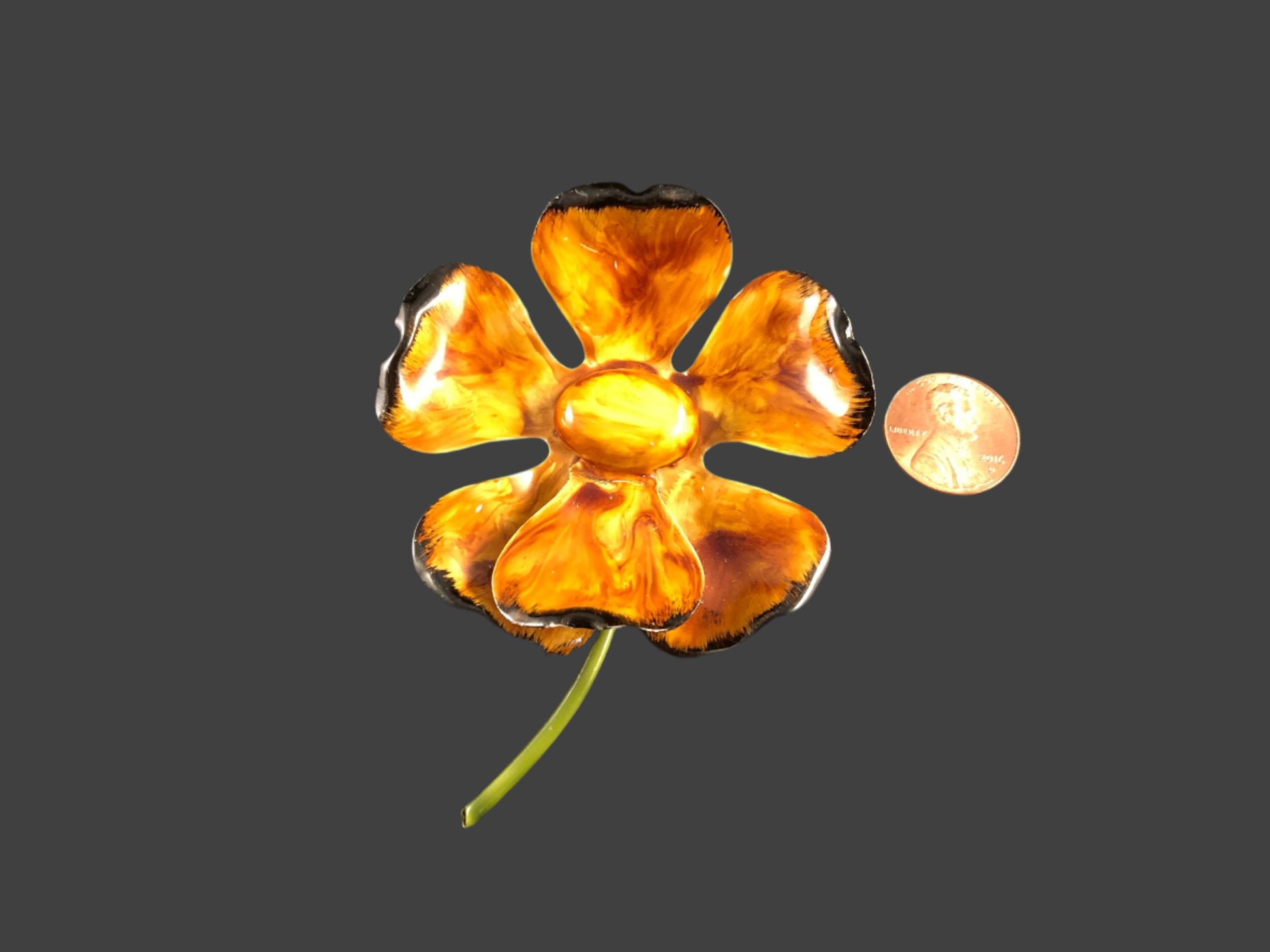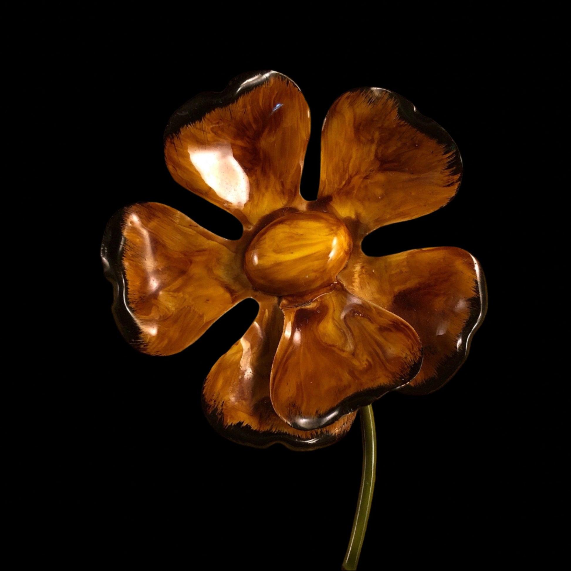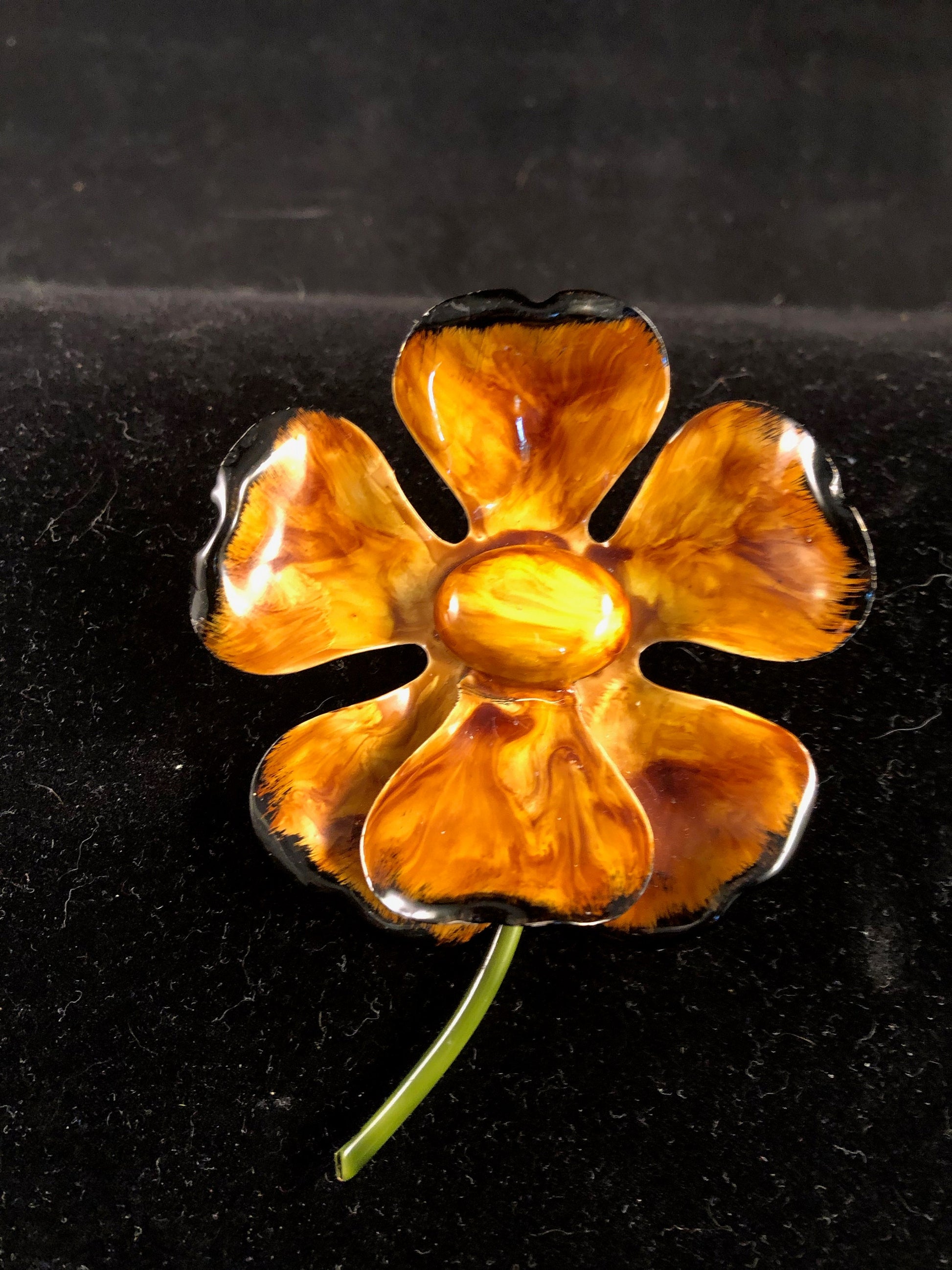 Brown, Yellow and Black enamel flower Brooch- Original by Robert