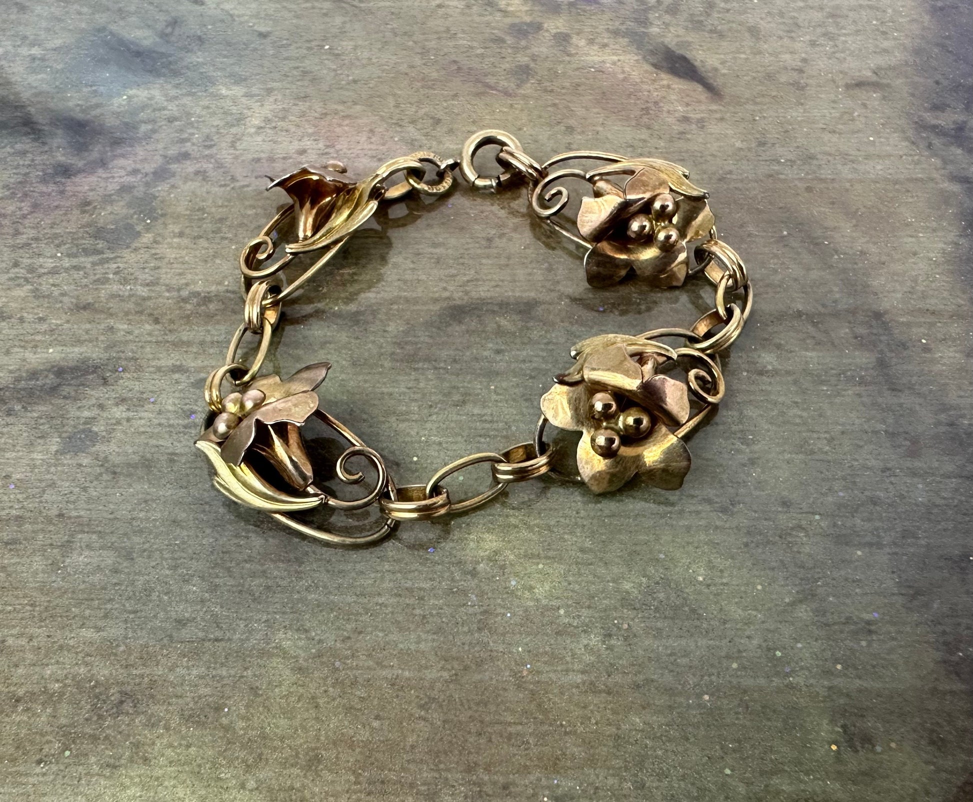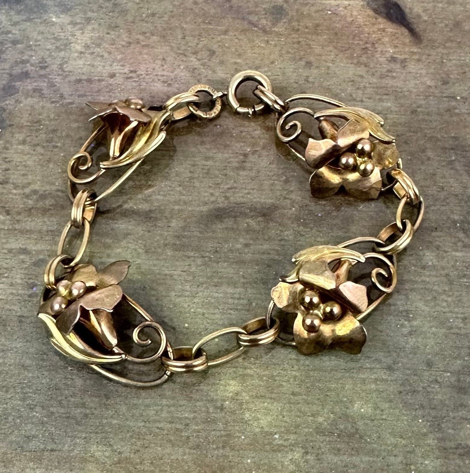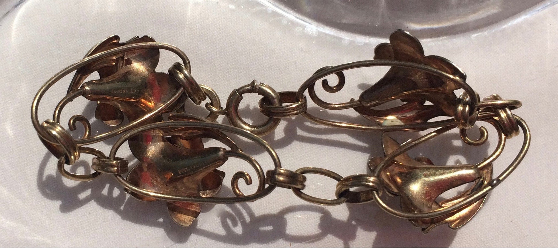 Carl Art Signed Art Deco Lily Blossom Link bracelet