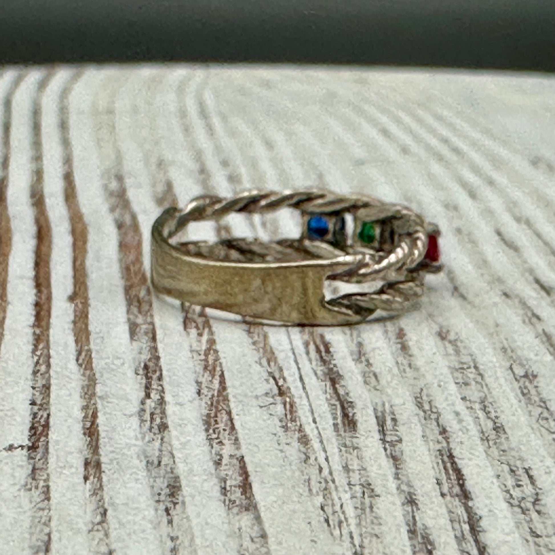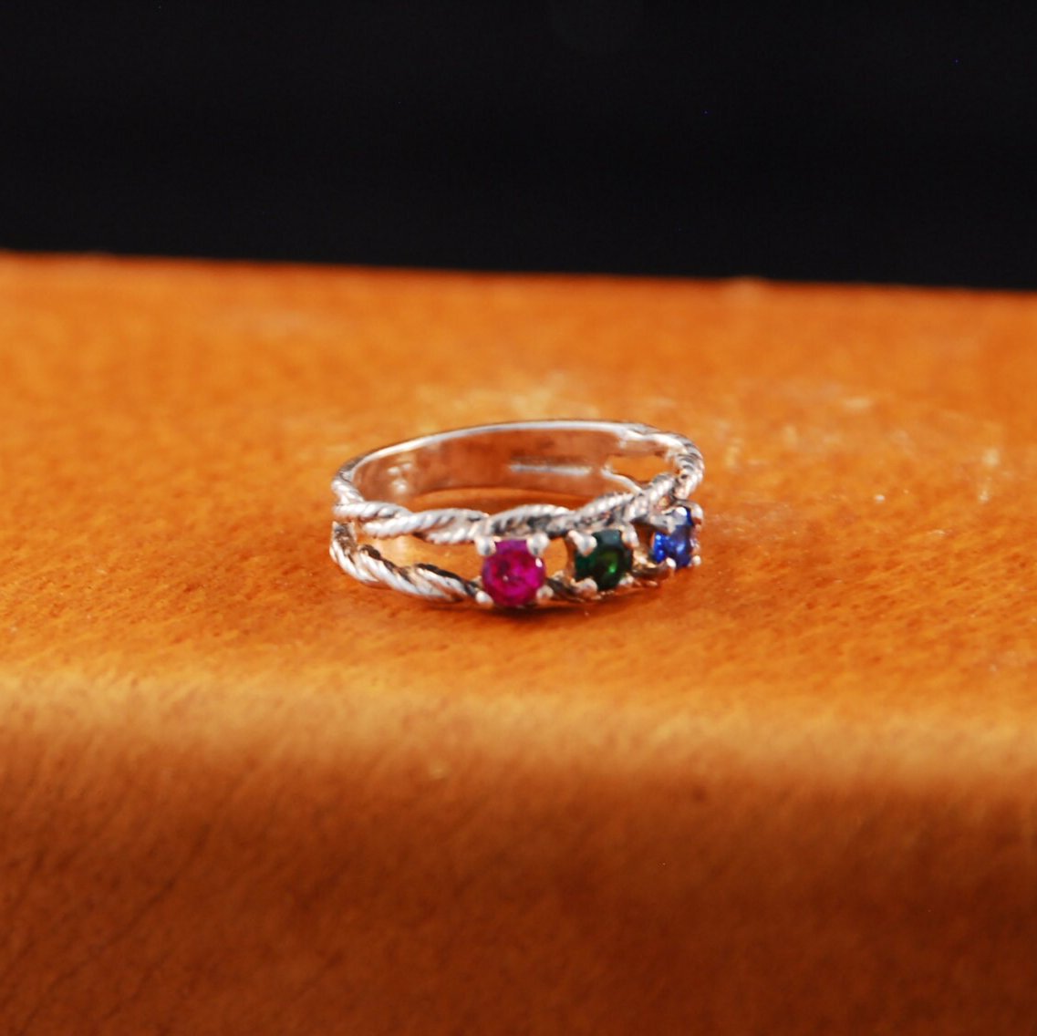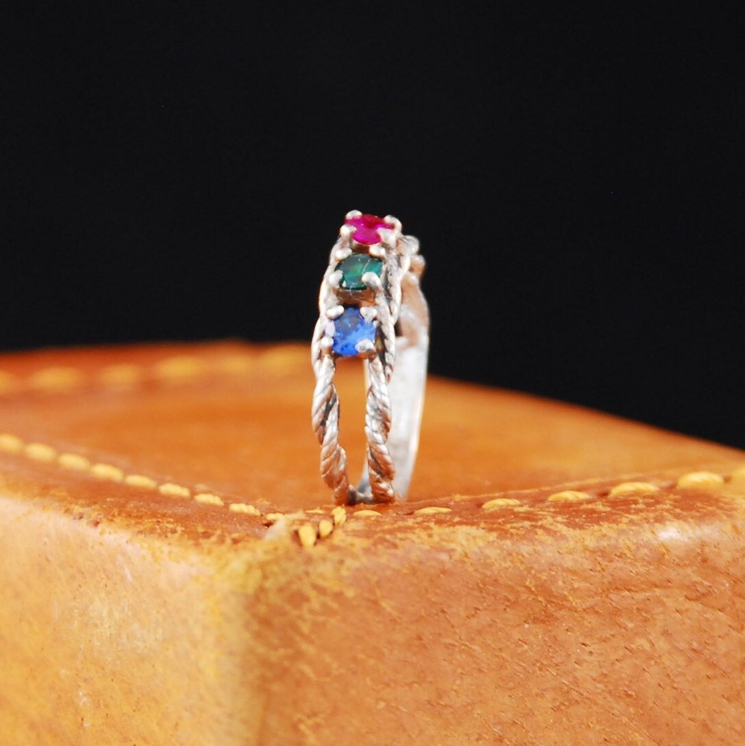 Double twisted Rope Sterling Silver ring with multicolored stones