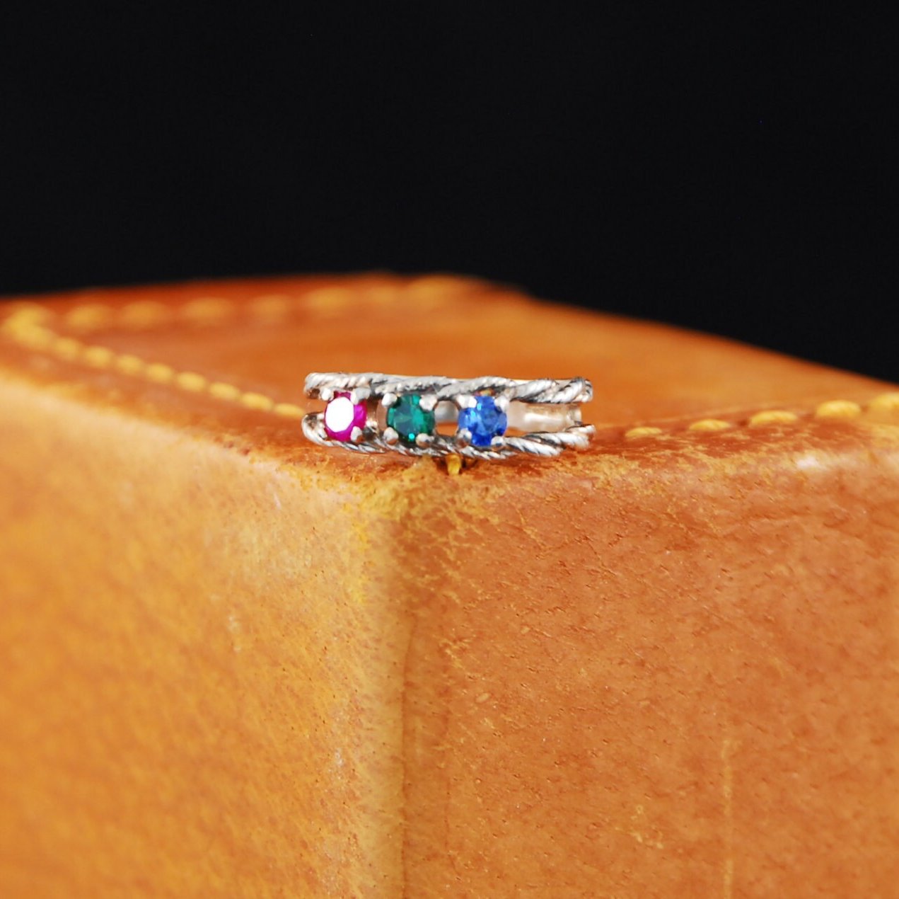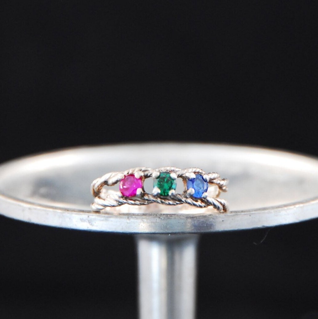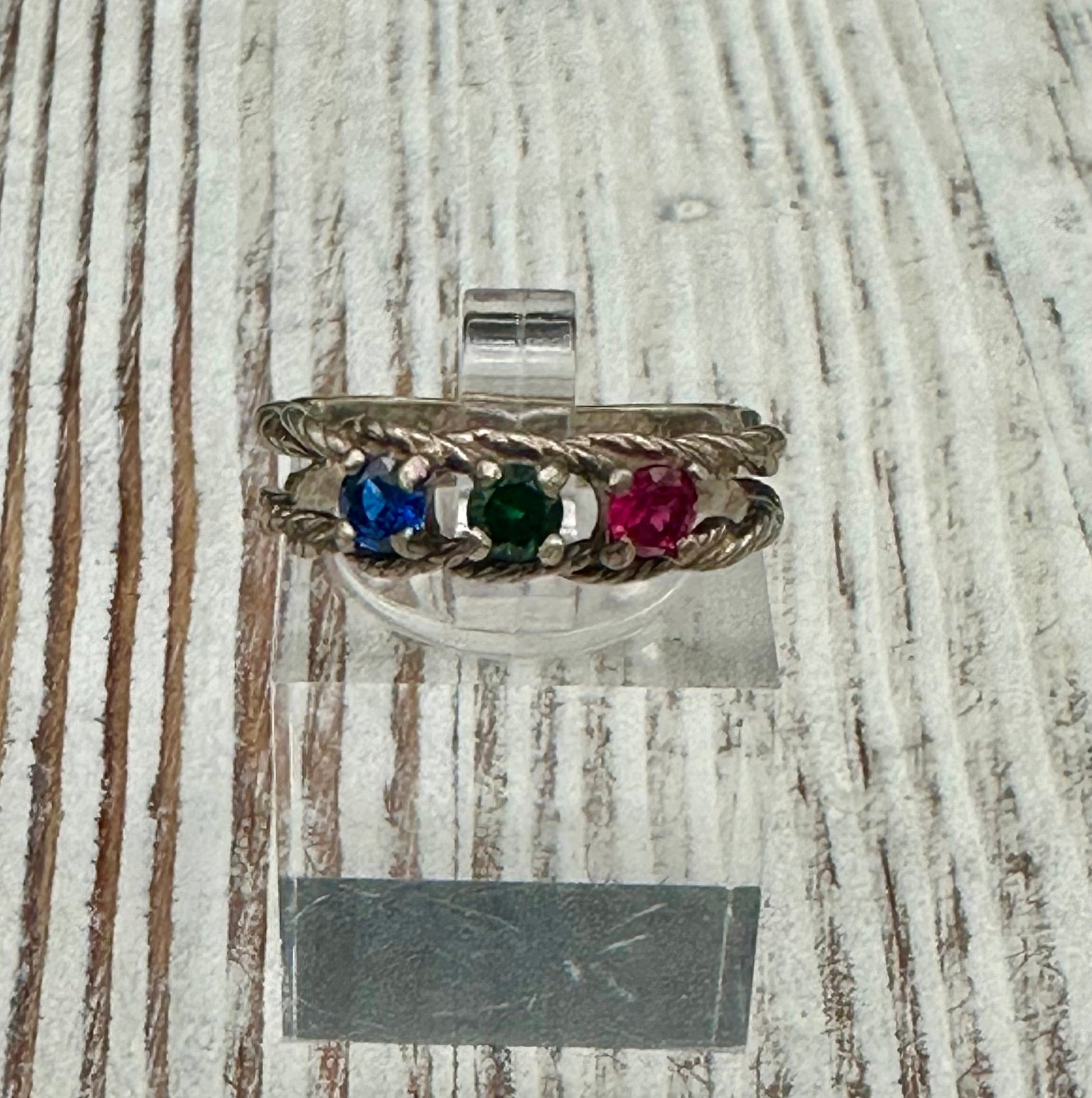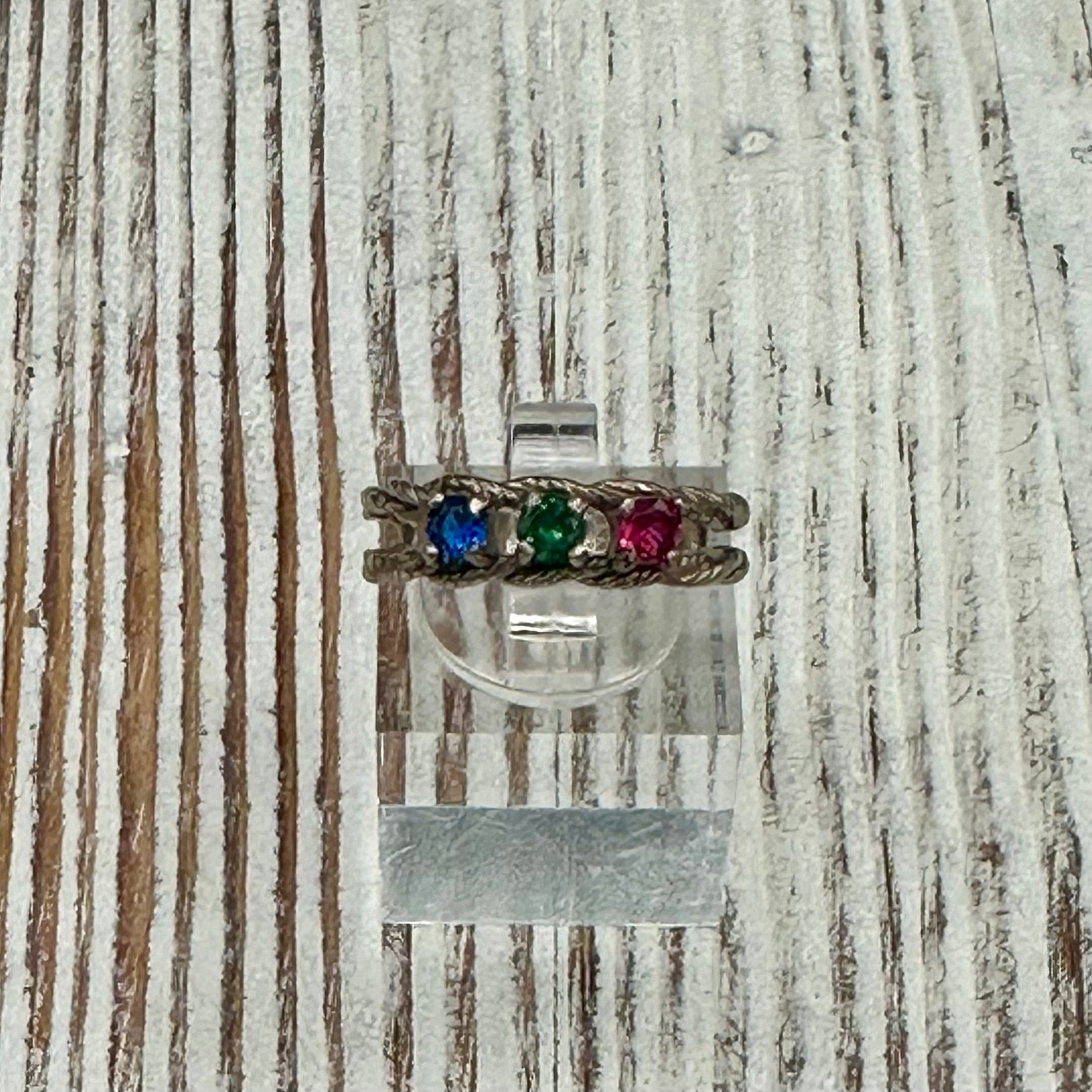 Double twisted Rope Sterling Silver ring with multicolored stones