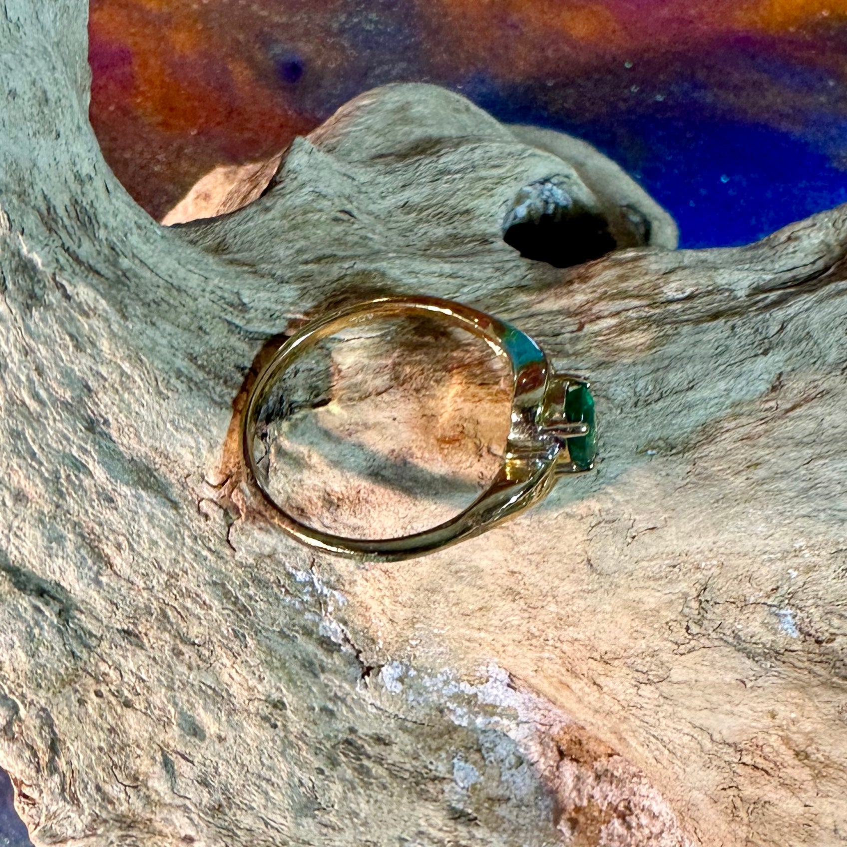 Emerald ring in 10K gold with small diamond accents