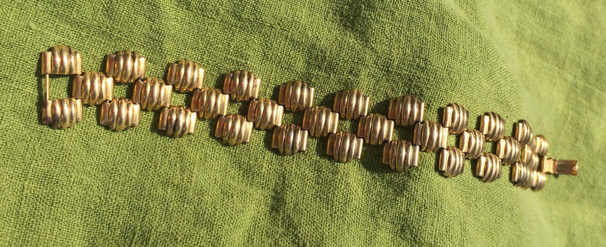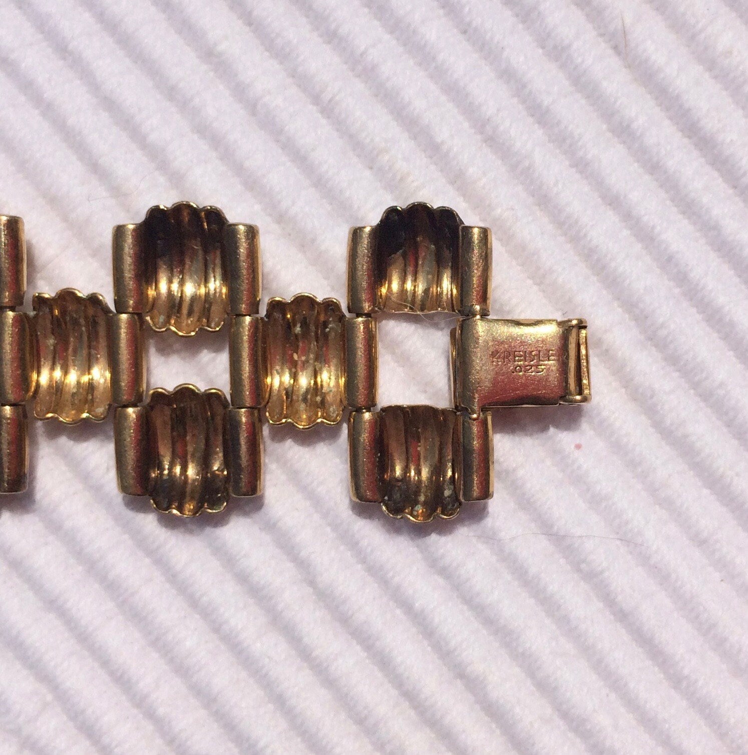 From the makers of Kreisler watch bands this is a beautiful vintage Gold over sterling track bracelet- The snap clasp is marked 925 and closes securely.