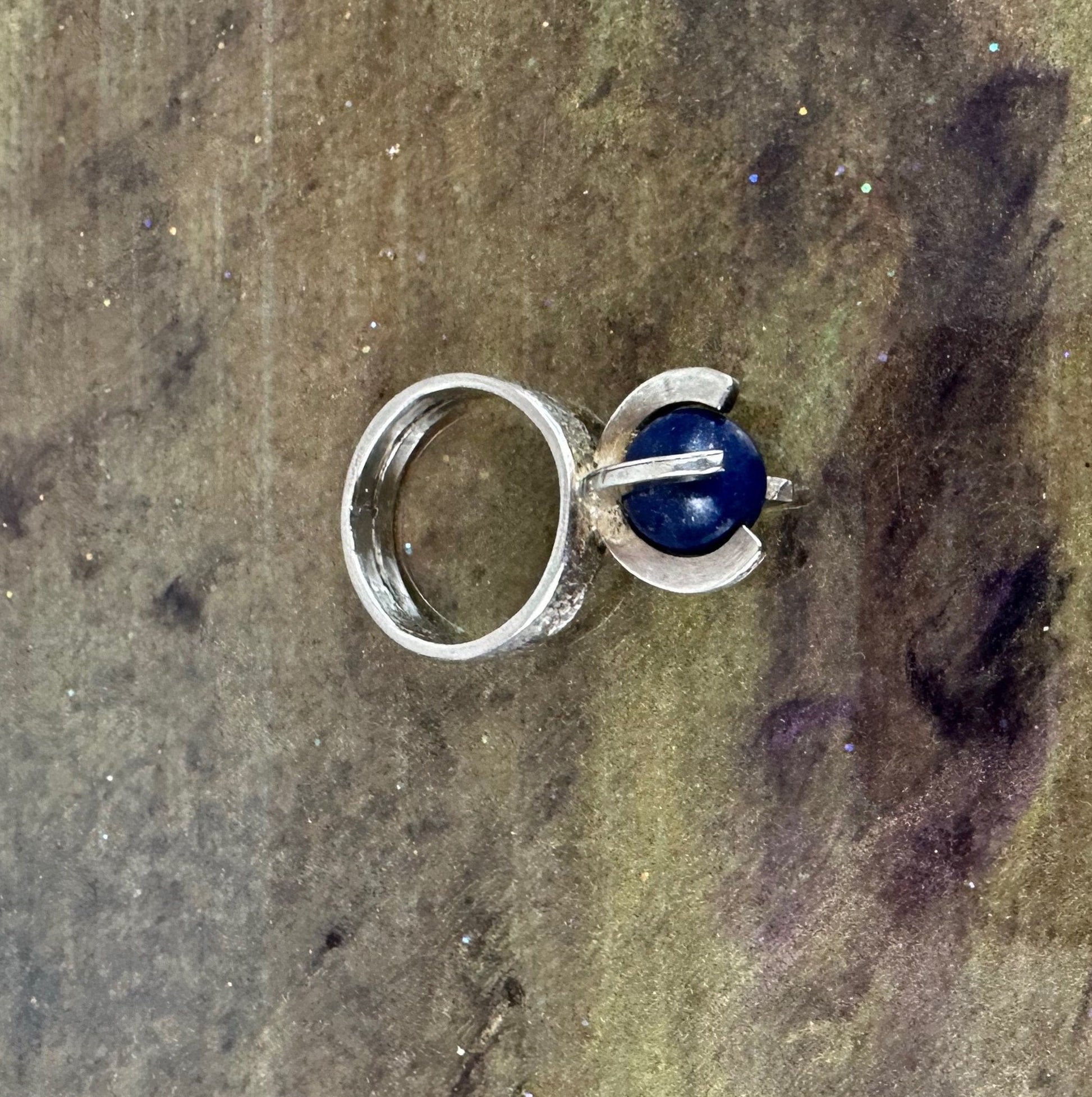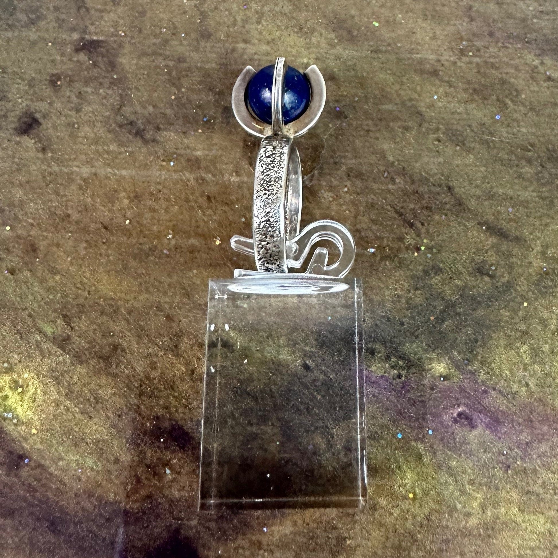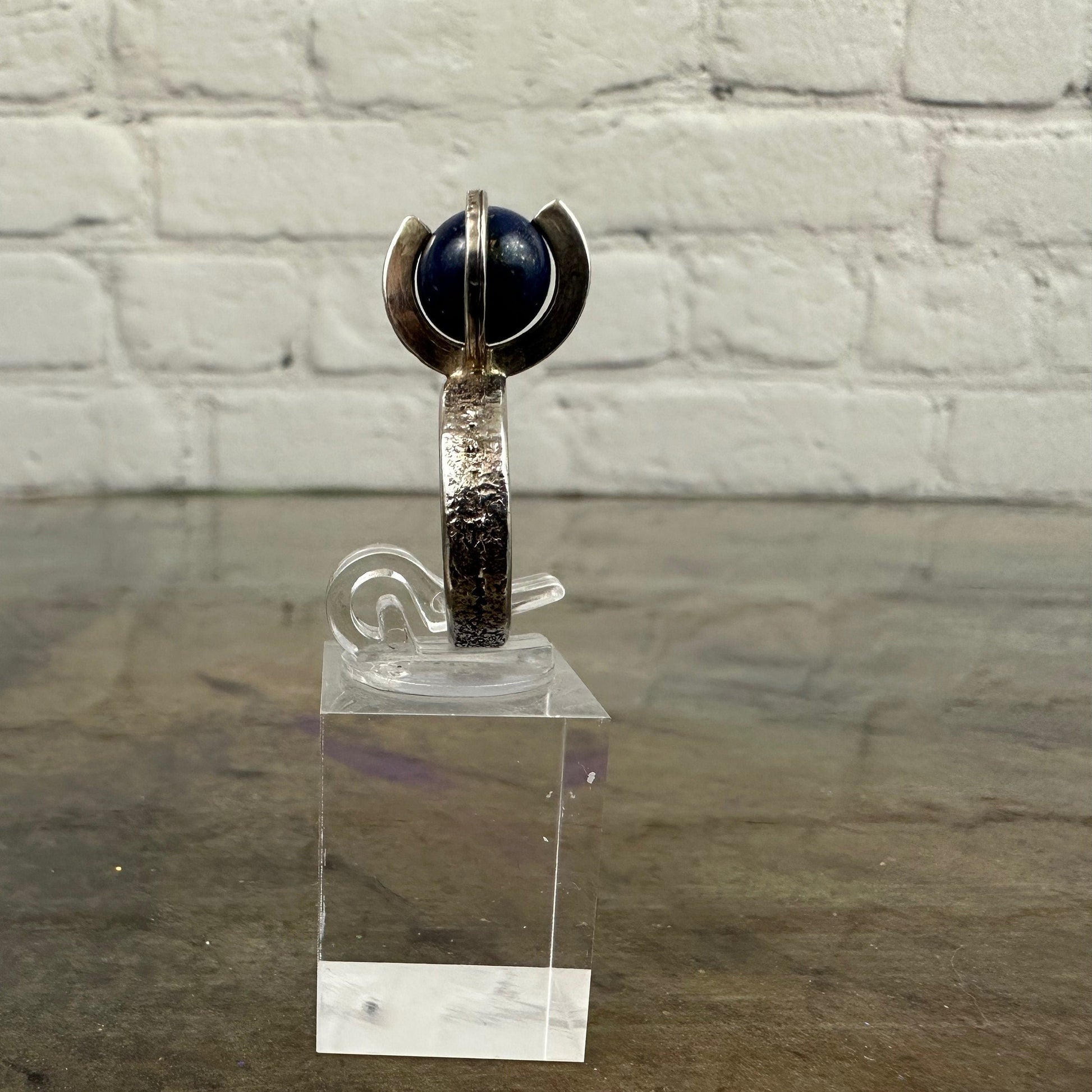 Experience the one-of-a-kind beauty of our Lapis Lazuli Claw/Cage Ring in Sterling Silver. This handmade ring features a rotating ball of Lapis Lazuli, encased in a stunning sterling silver cage sitting on a textured sterling silver band. Tested for authenticity and weighing 6.22 grams, size 5.75 this unique piece is perfect for any occasion. Own it today and stand out from the crowd.