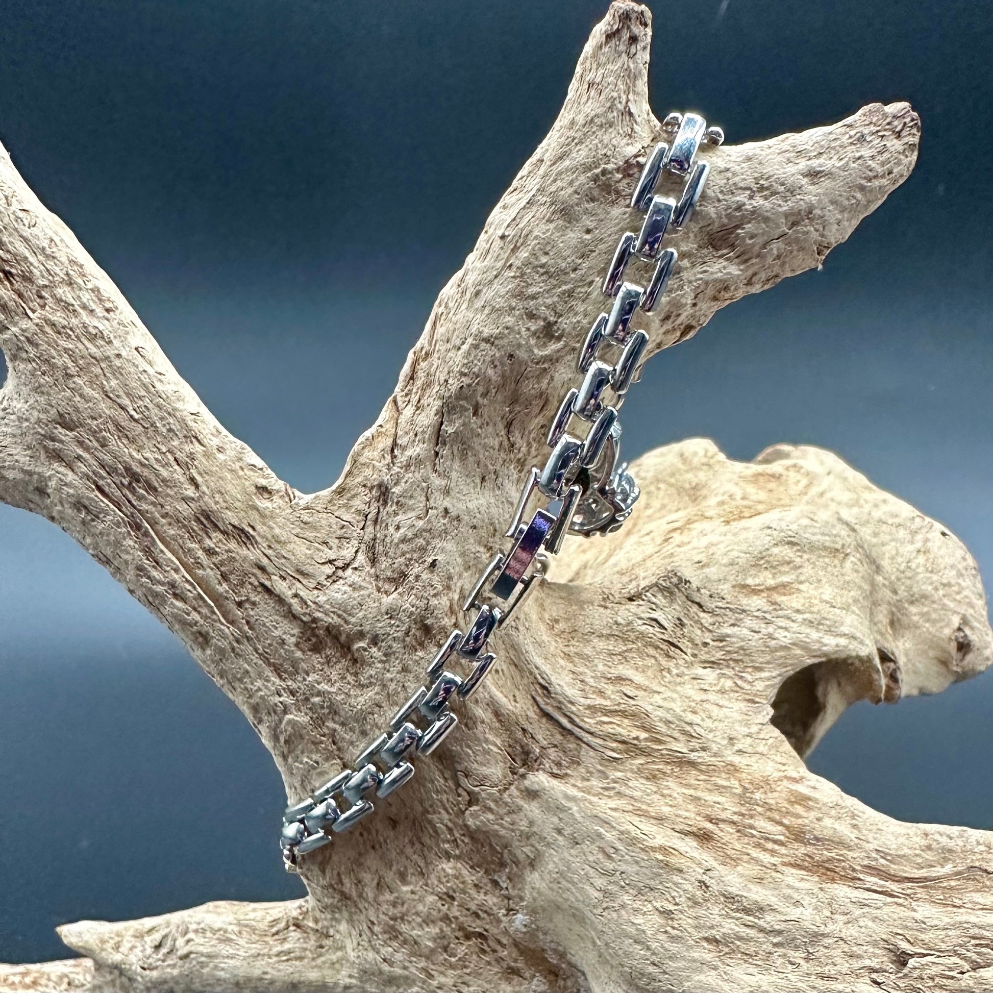 Nobel Black Pearl with Cubic Zirconia Stones is a sophisticated accessory that elevates any plain outfit. The Rhodium plating adds a touch of shine, while the 7-inch length makes it effortless to wear. Adorned with plenty of sparkles, this bracelet is completed with a fold-over clasp and weighs 13.4 g or 0.5 oz.