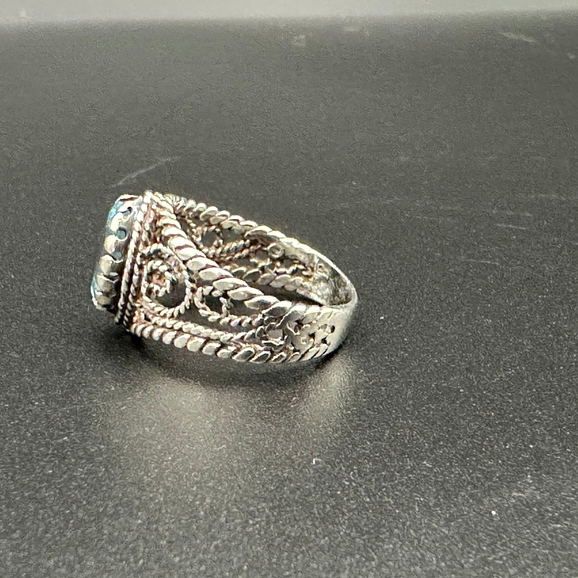 Sterling Silver Twisted Rope ring with Blue Topaz