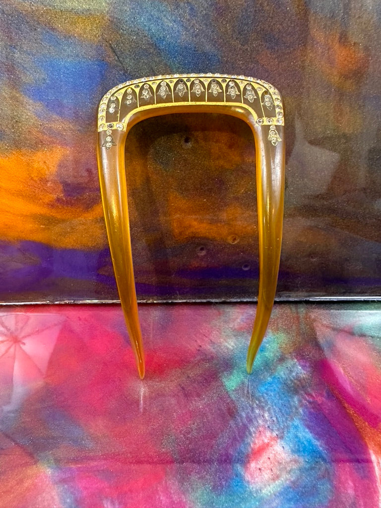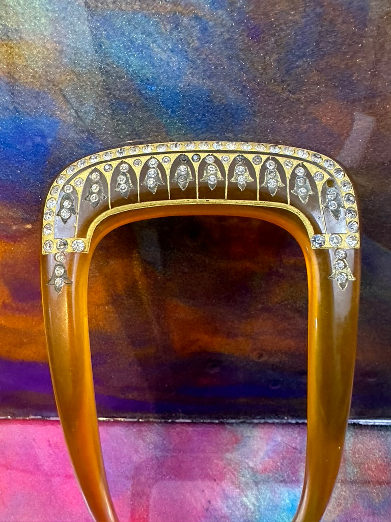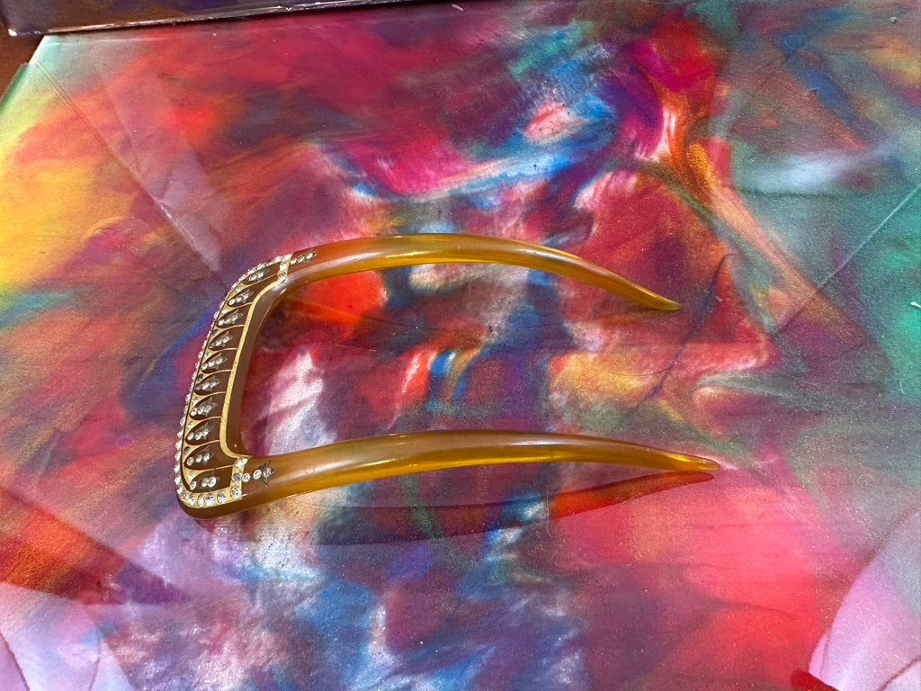 Vintage Celluloid Hair comb with Rhinestone accents