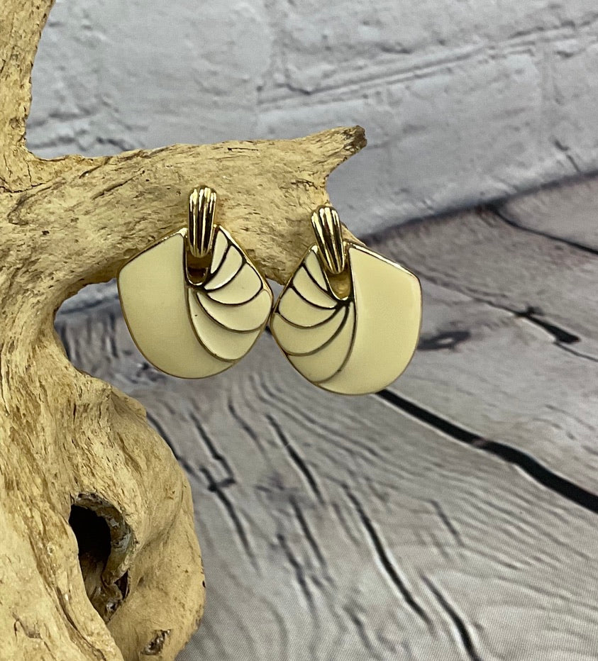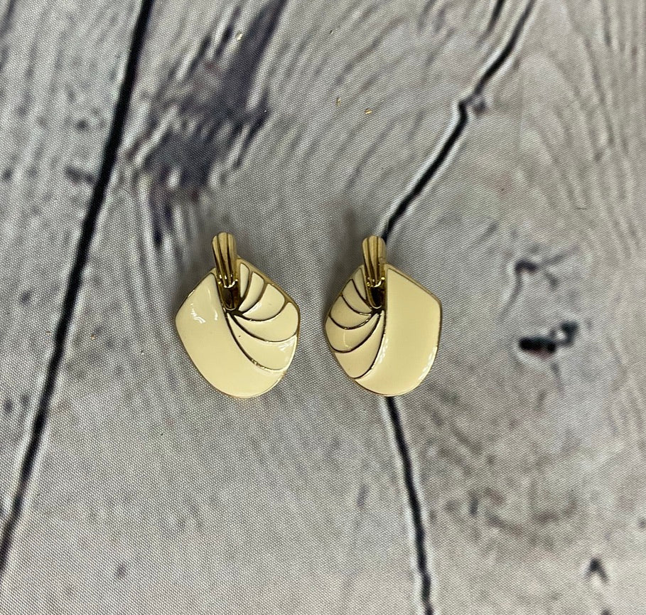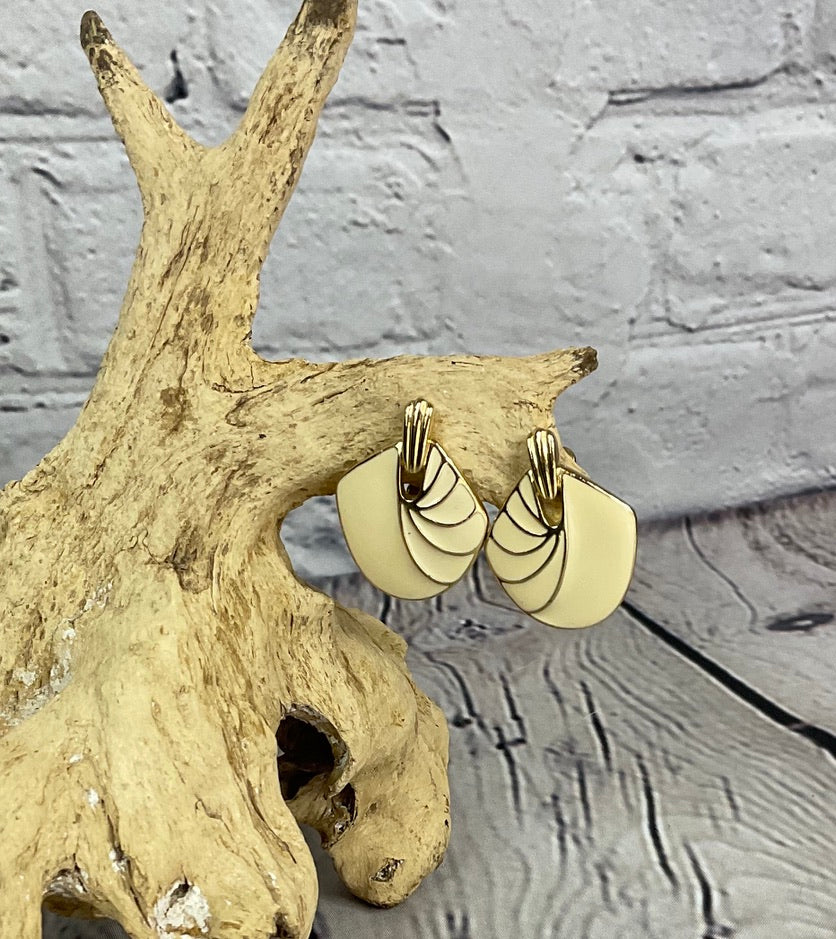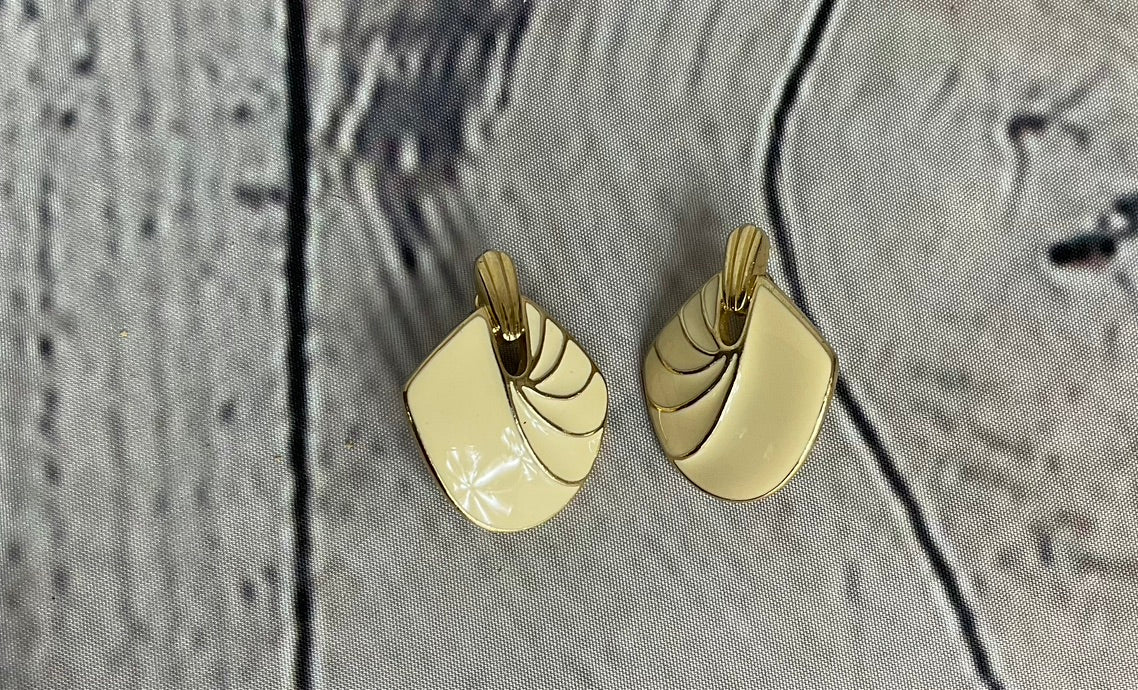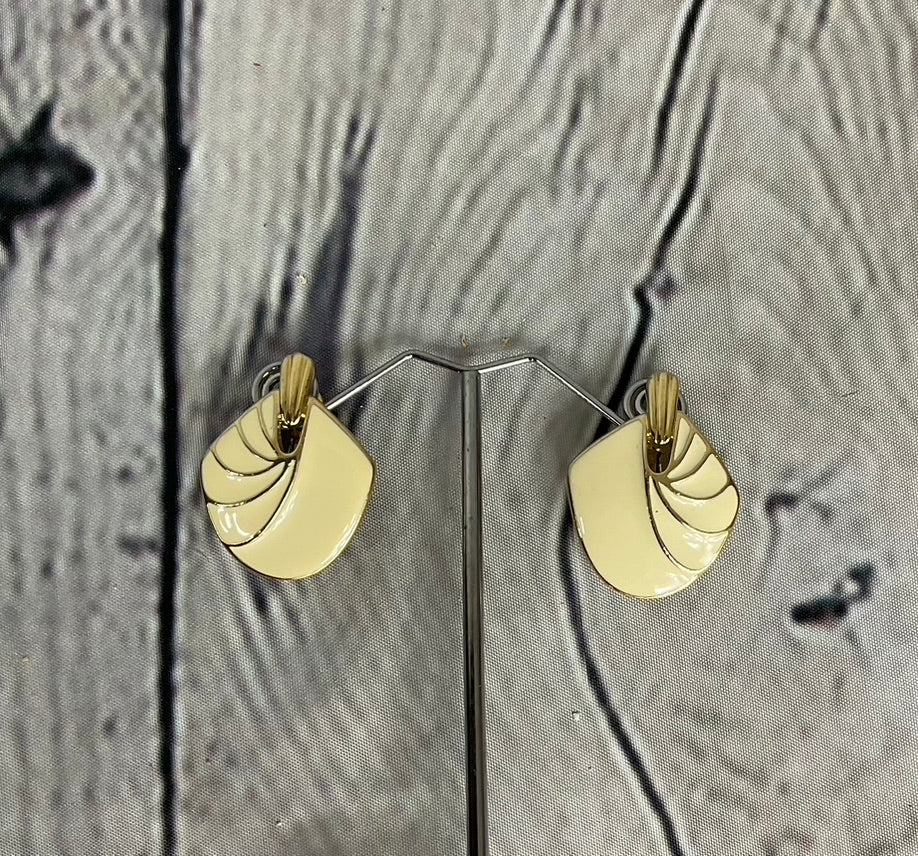 VIntage Cream Enamel and Gold Clip-on Earrings