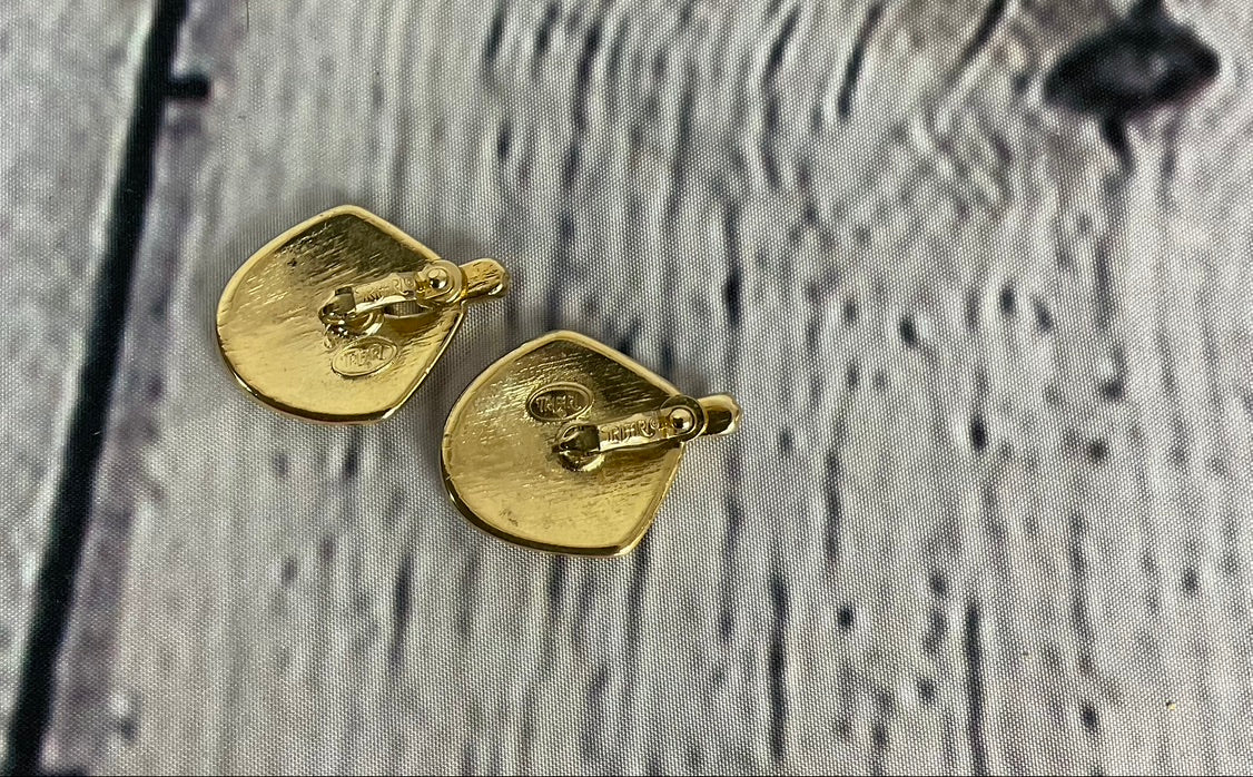 These vintage cream enamel and gold clip-on earrings offer a touch of elegance and sophistication to any outfit. The goldtone adds a classic touch while the cream enamel provides a subtle pop of color. These clip-on earrings are perfect for those without pierced ears, making them a versatile and convenient accessory.