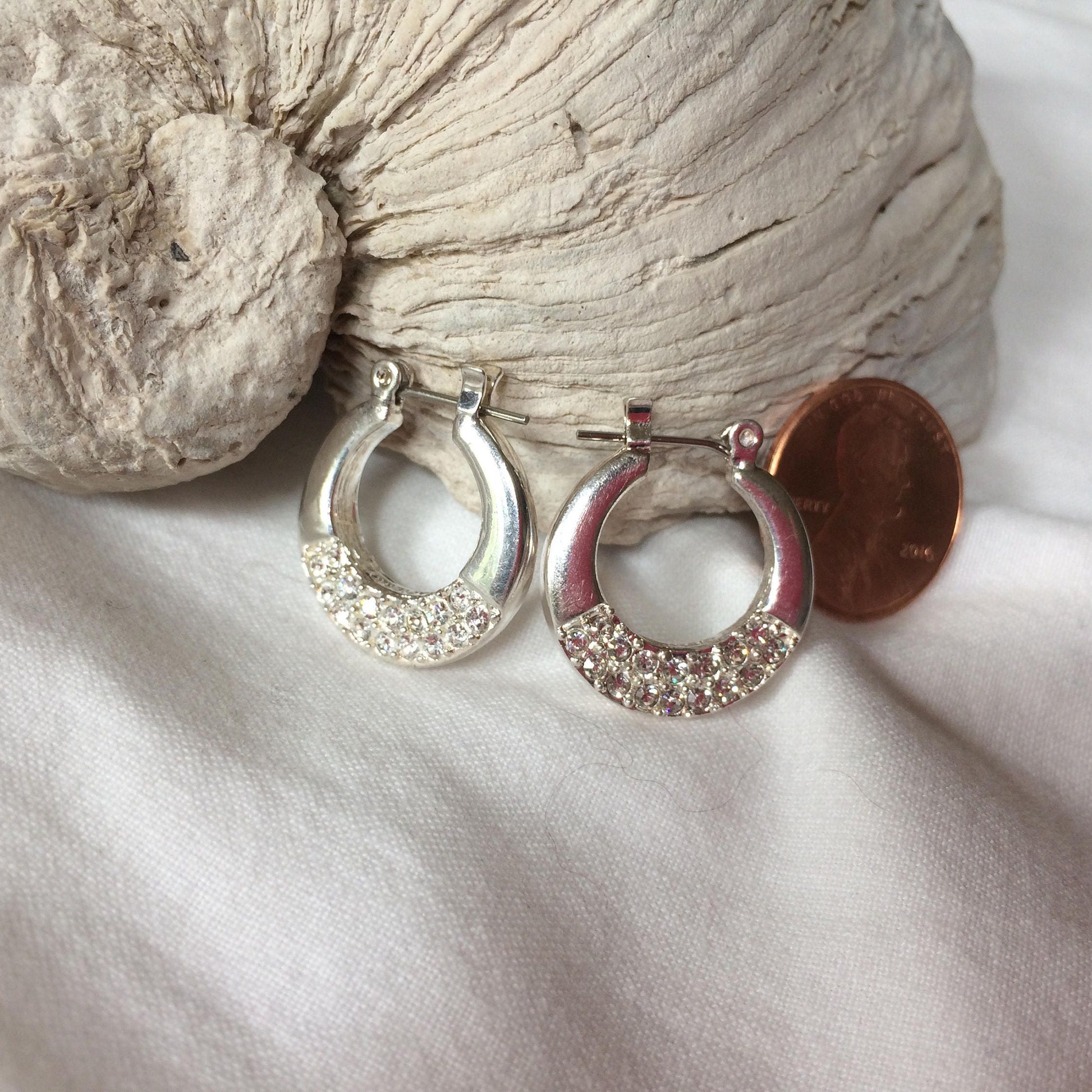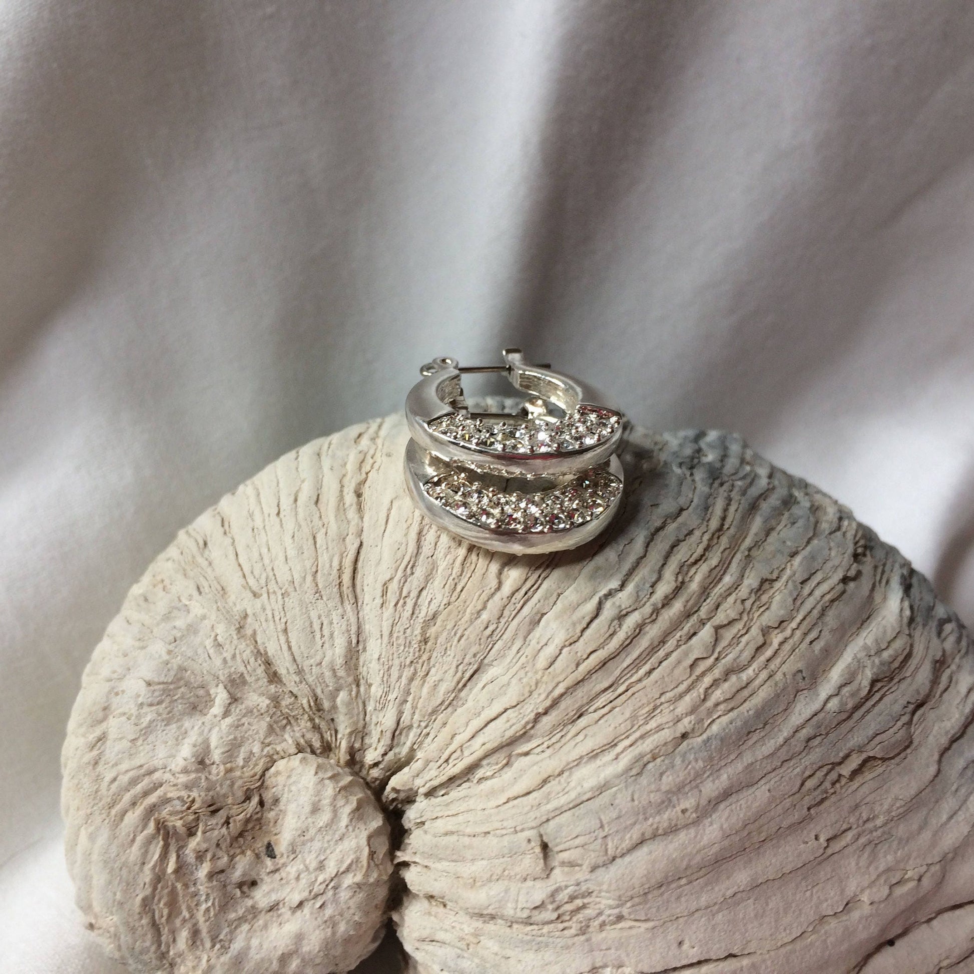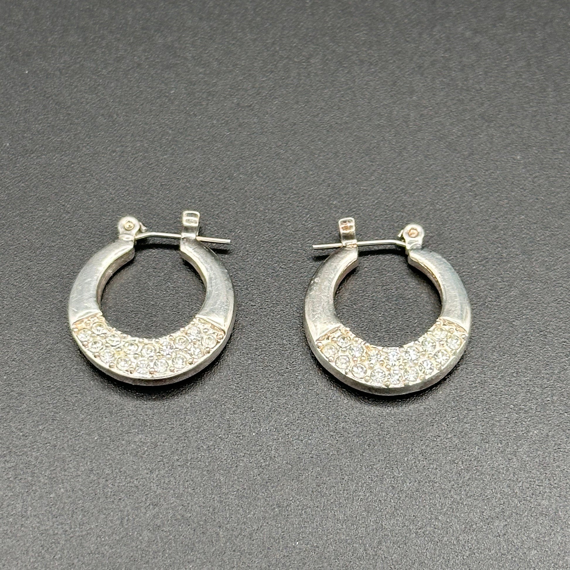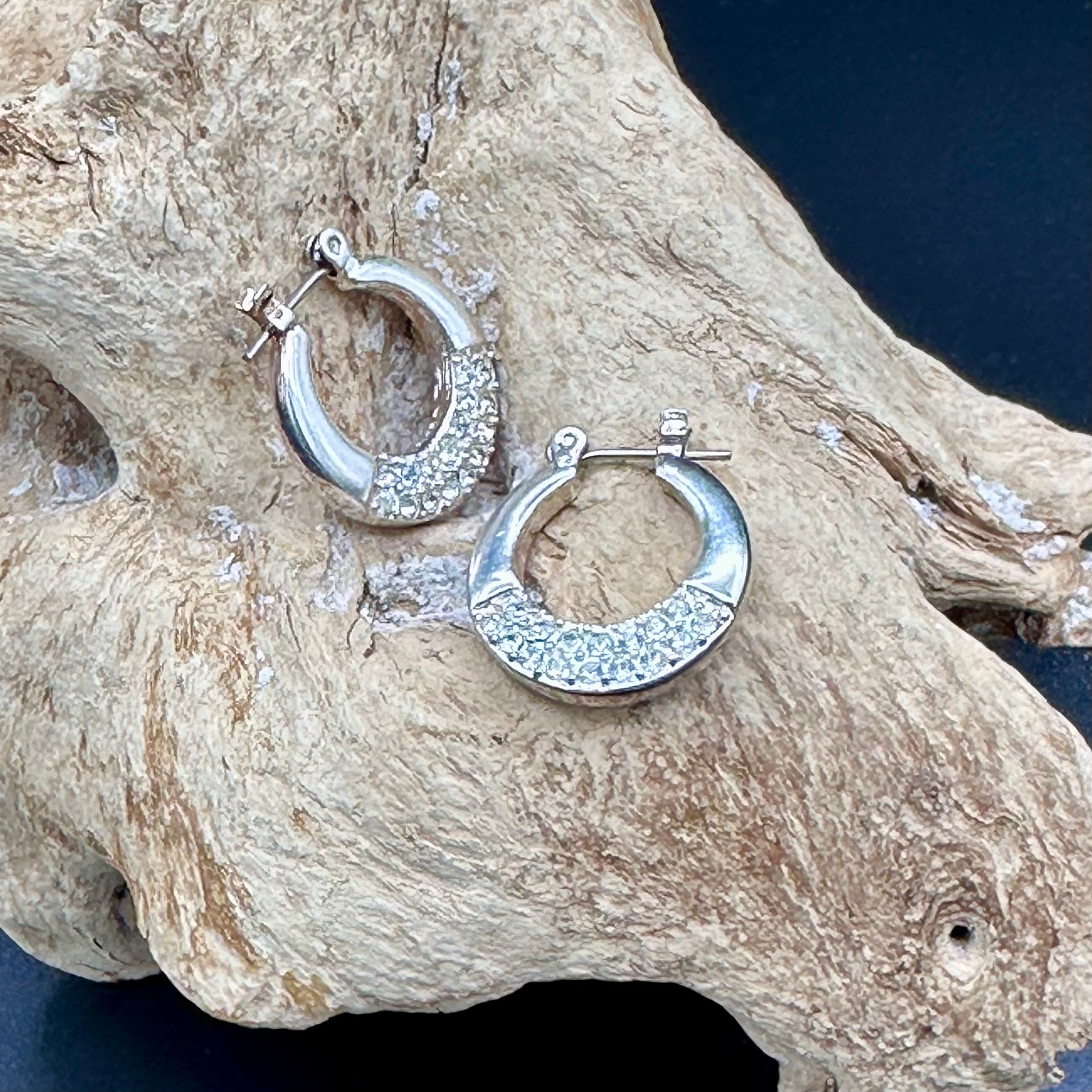 Vintage Napier Silver and Pave Crystal Hoop Earrings