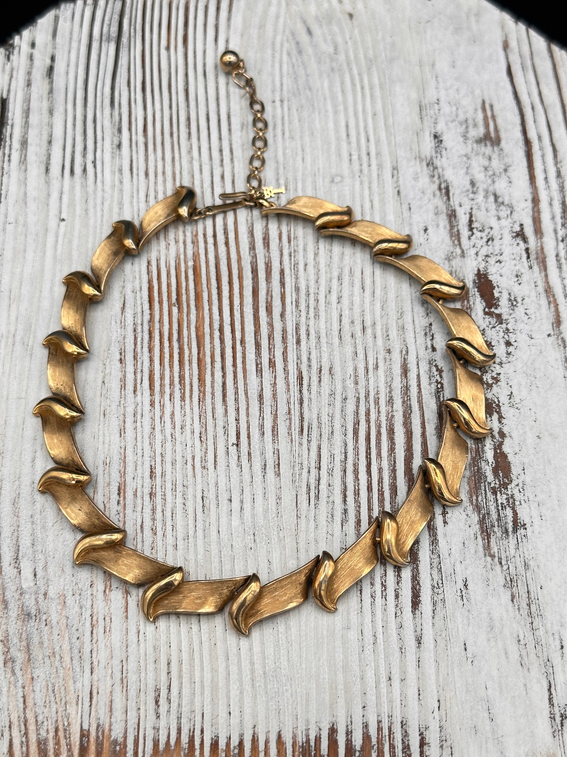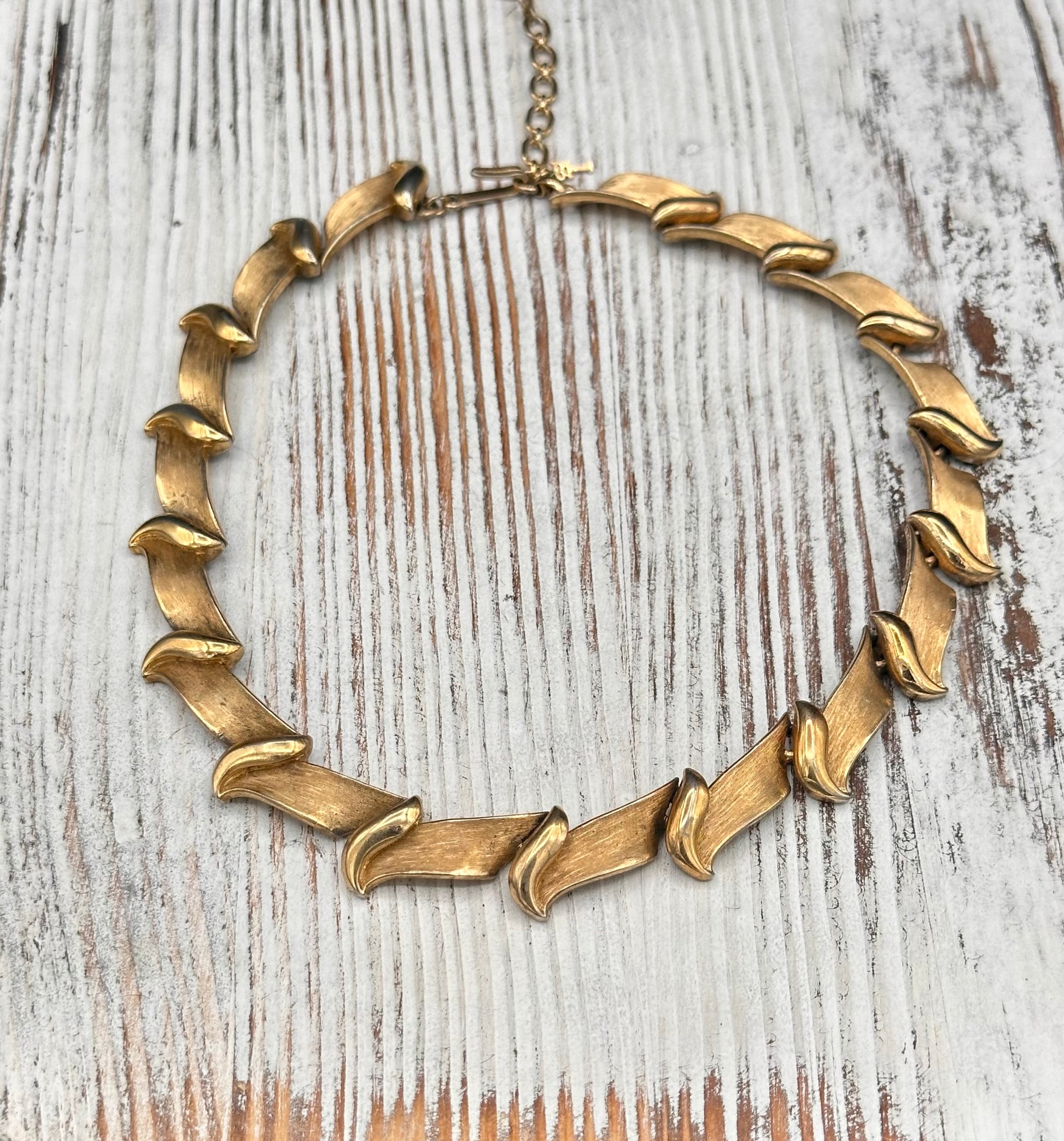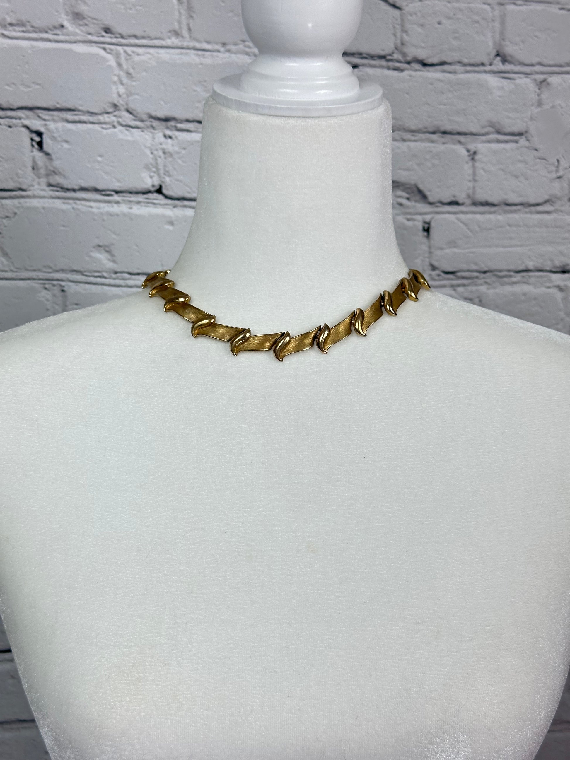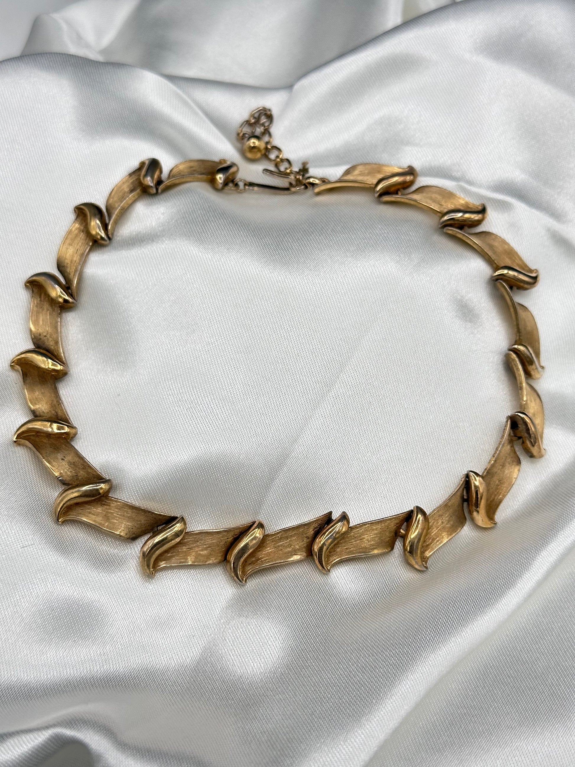 Vintage Trifari Brushed Gold tone Collar Necklace with Hangtag