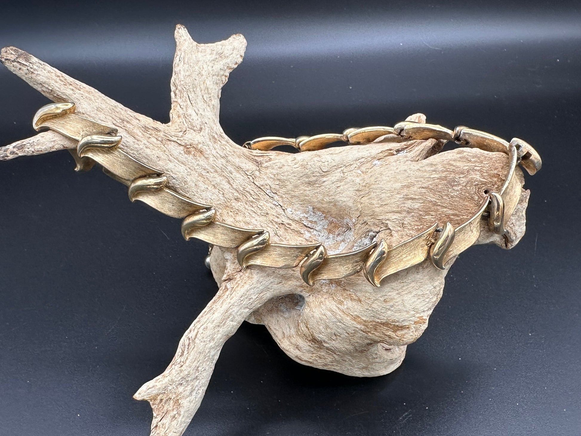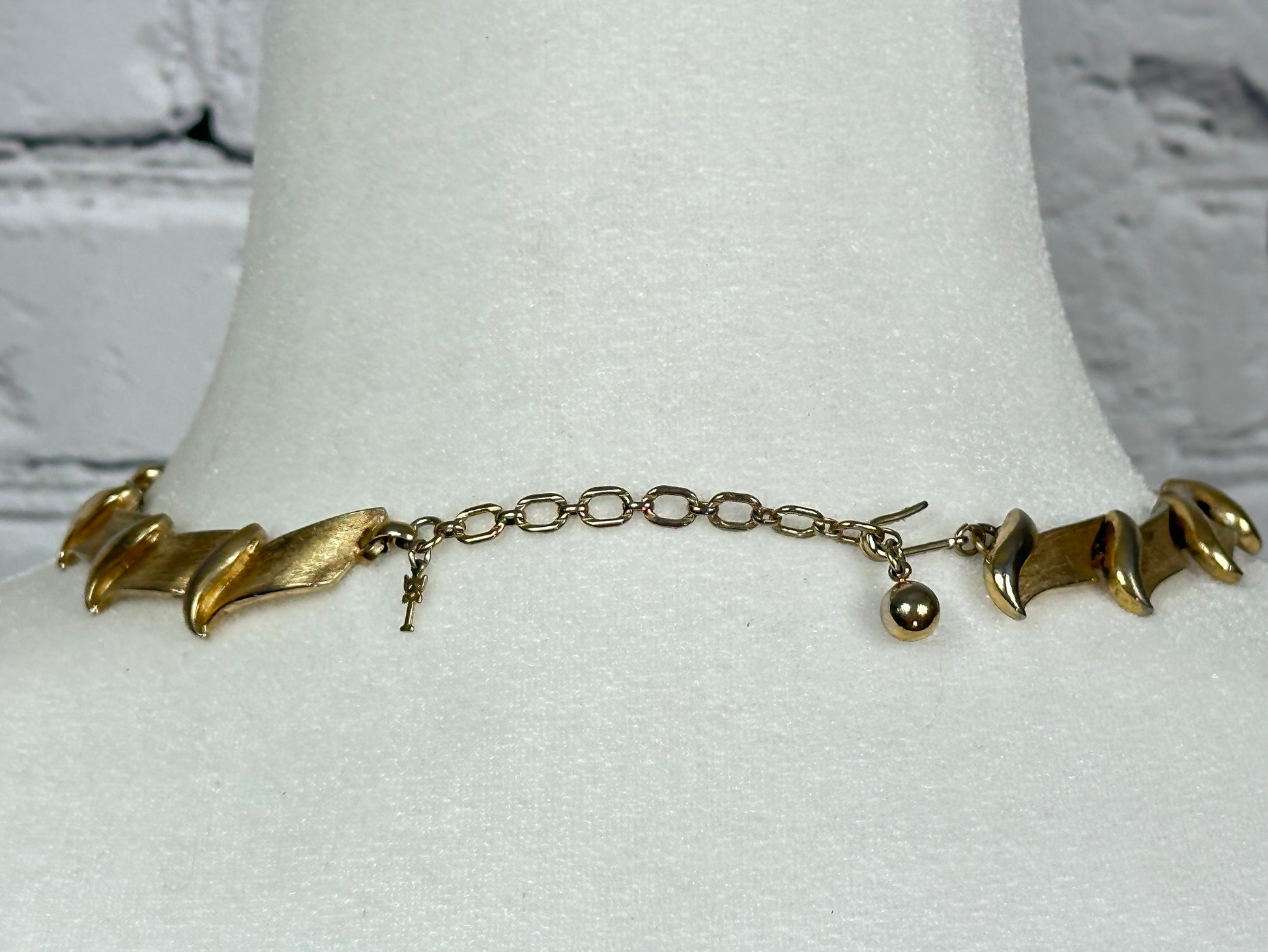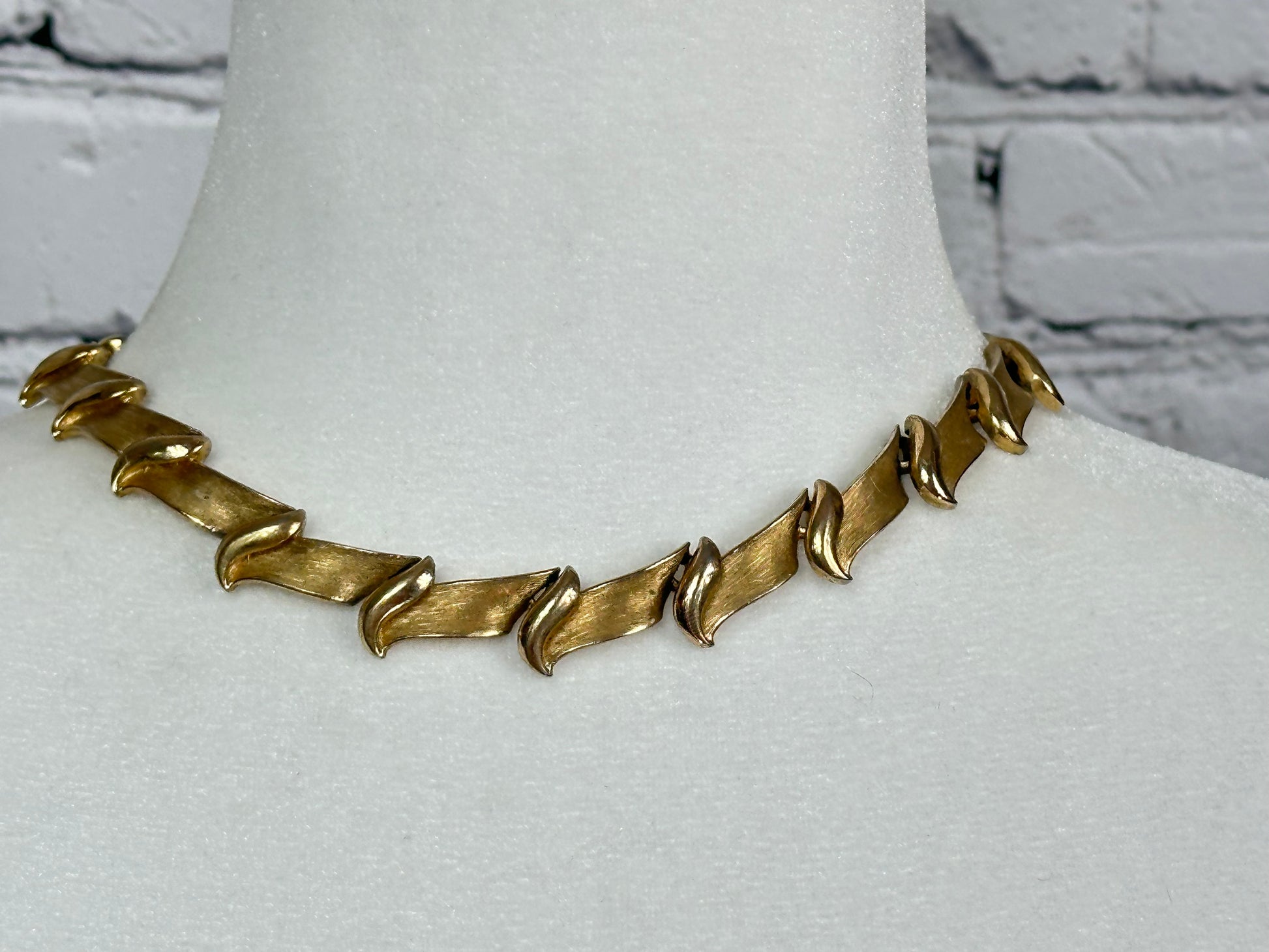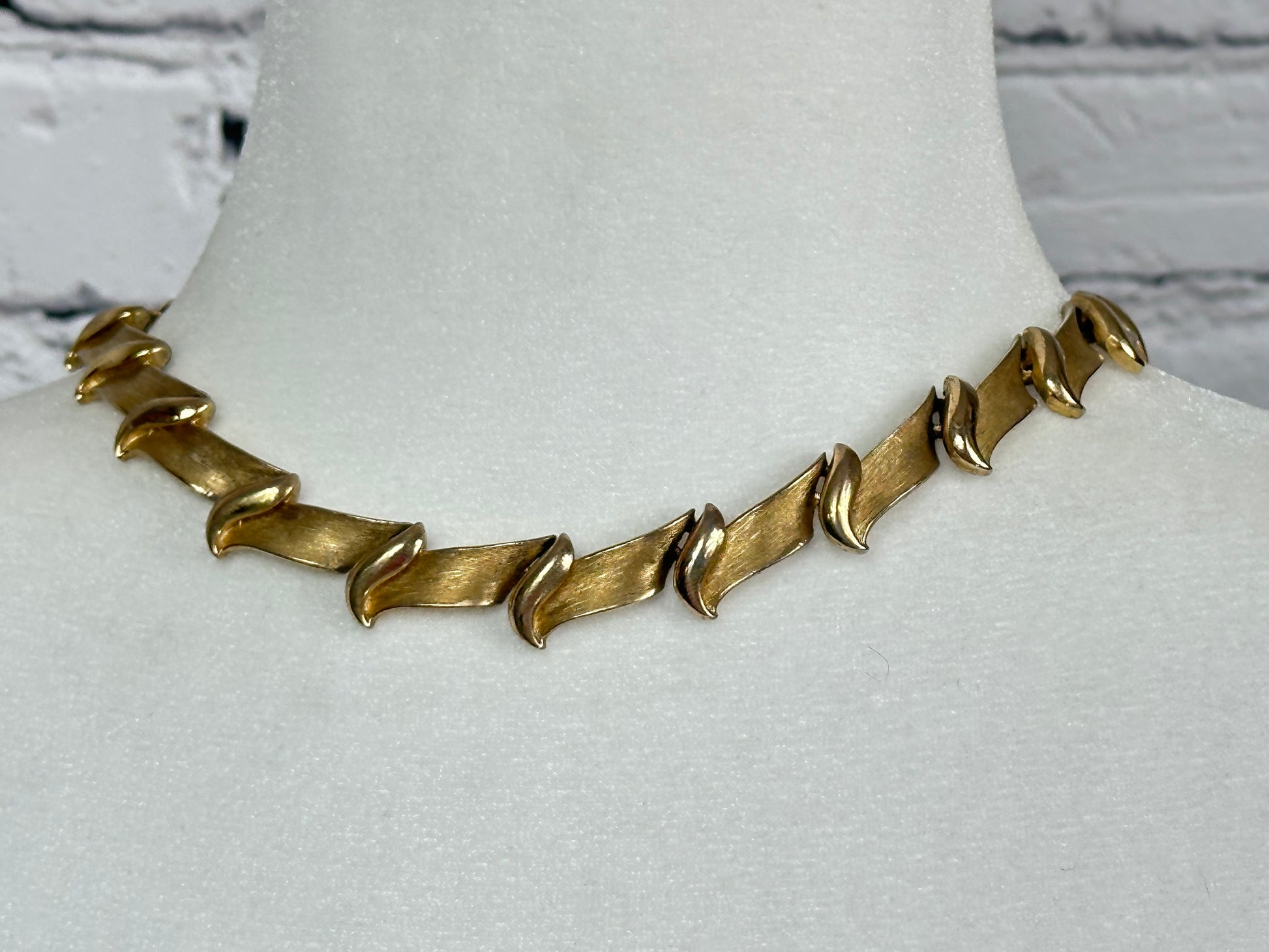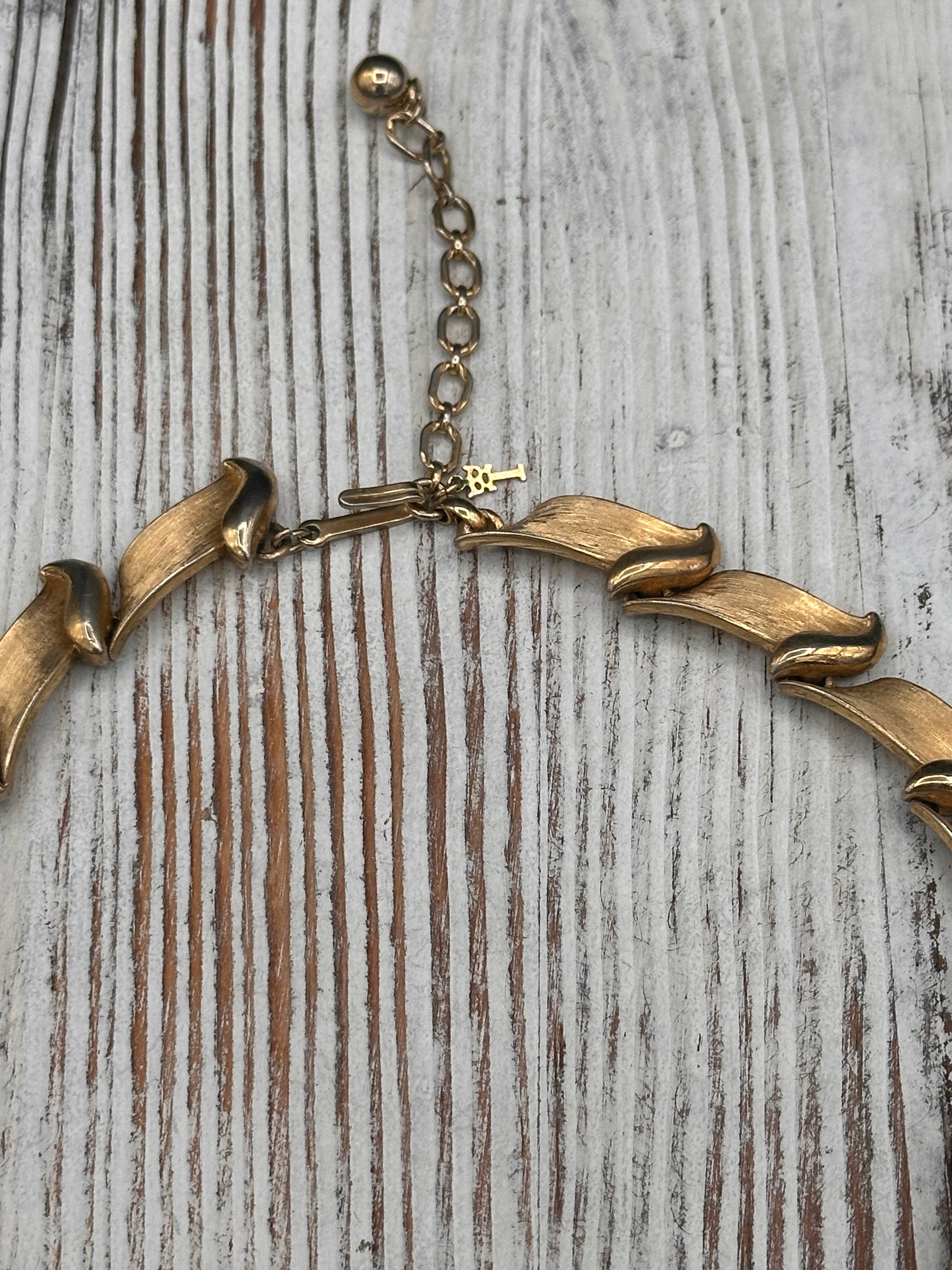 Vintage Trifari Brushed Gold tone Collar Necklace with Hangtag